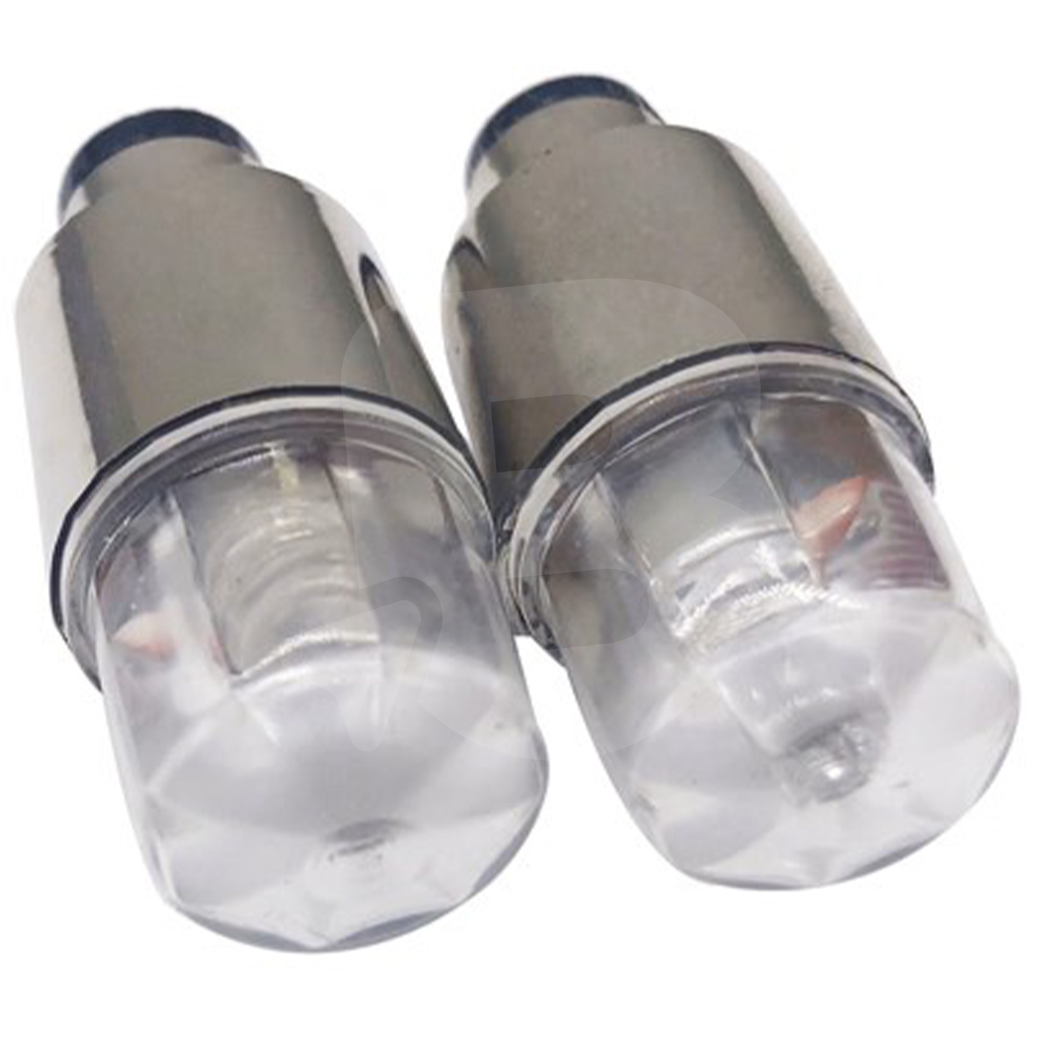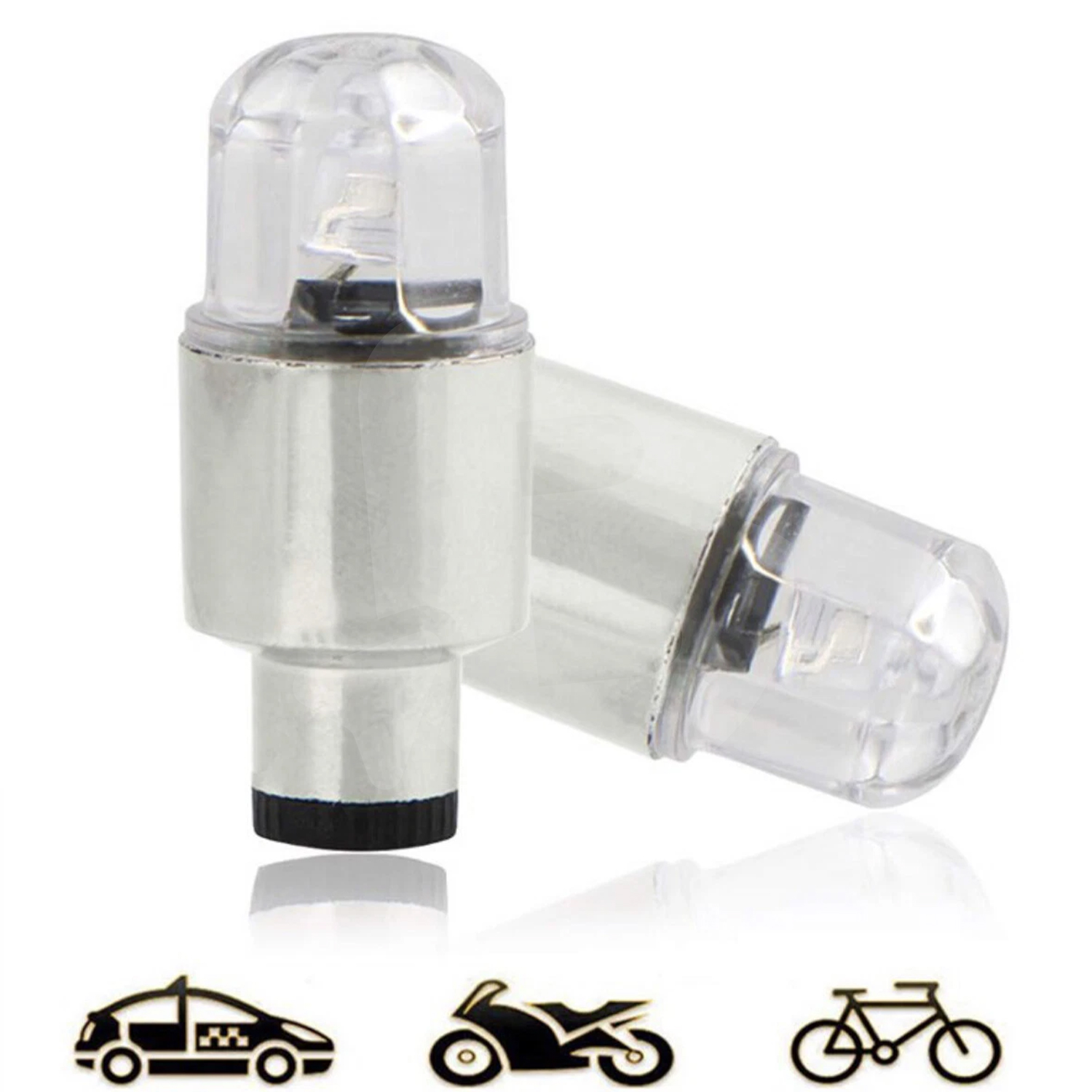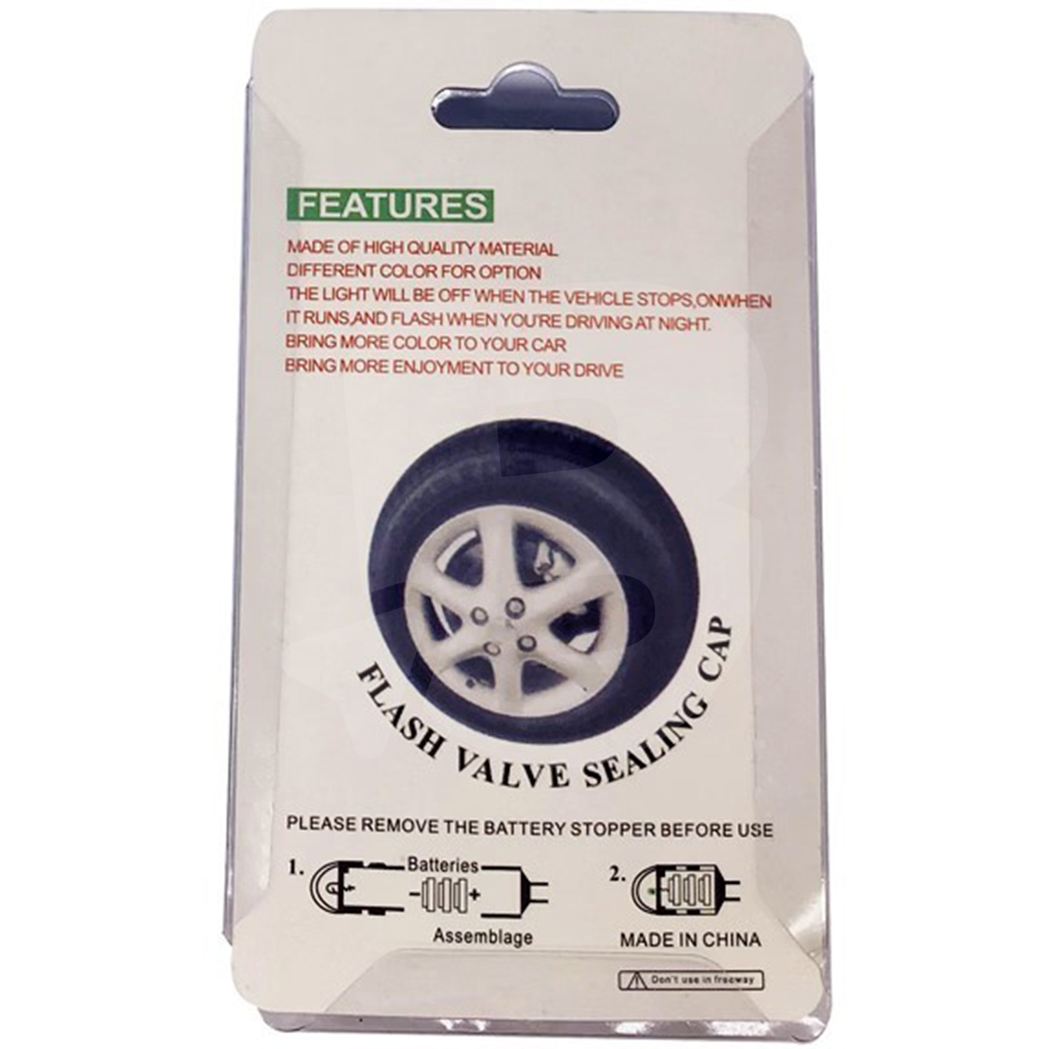 Corpul luminilor este realizat din metal rezistent, cu capac transparent din plastic dur, oferind protecție internă componentelor electronice. Designul compact permite montarea facilă fără unelte speciale, iar filetul standard este compatibil cu majoritatea valvelor utilizate pe mașini, motociclete și biciclete. Dimensiunea redusă și greutatea de doar 18 g per set asigură utilizarea fără a afecta echilibrul roților.