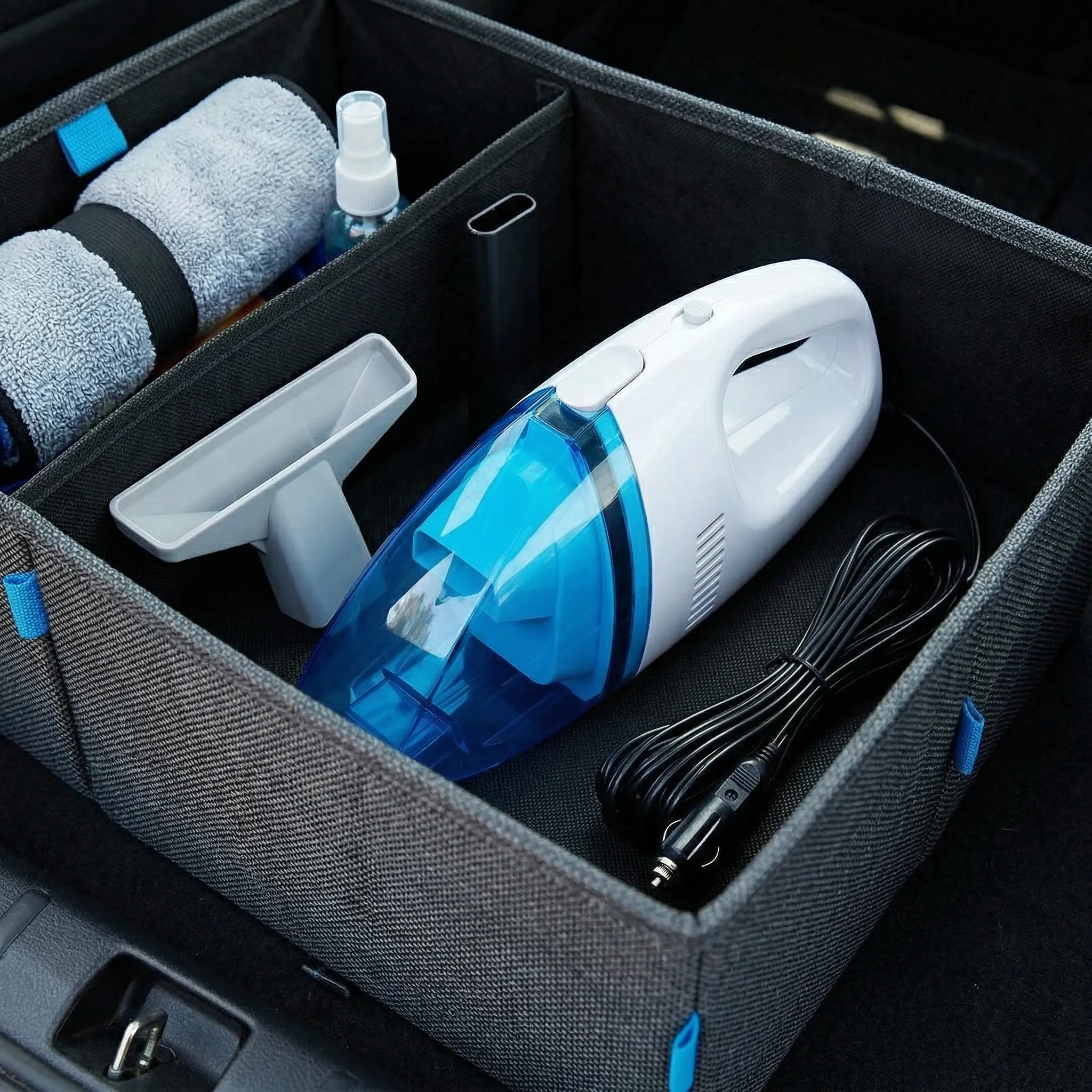 - Depozitare Ușoară și Compactă: Datorită dimensiunilor reduse și greutății de doar jumătate de kilogram, aspiratorul este extrem de portabil și încape perfect în micile compartimente ale portbagajului.