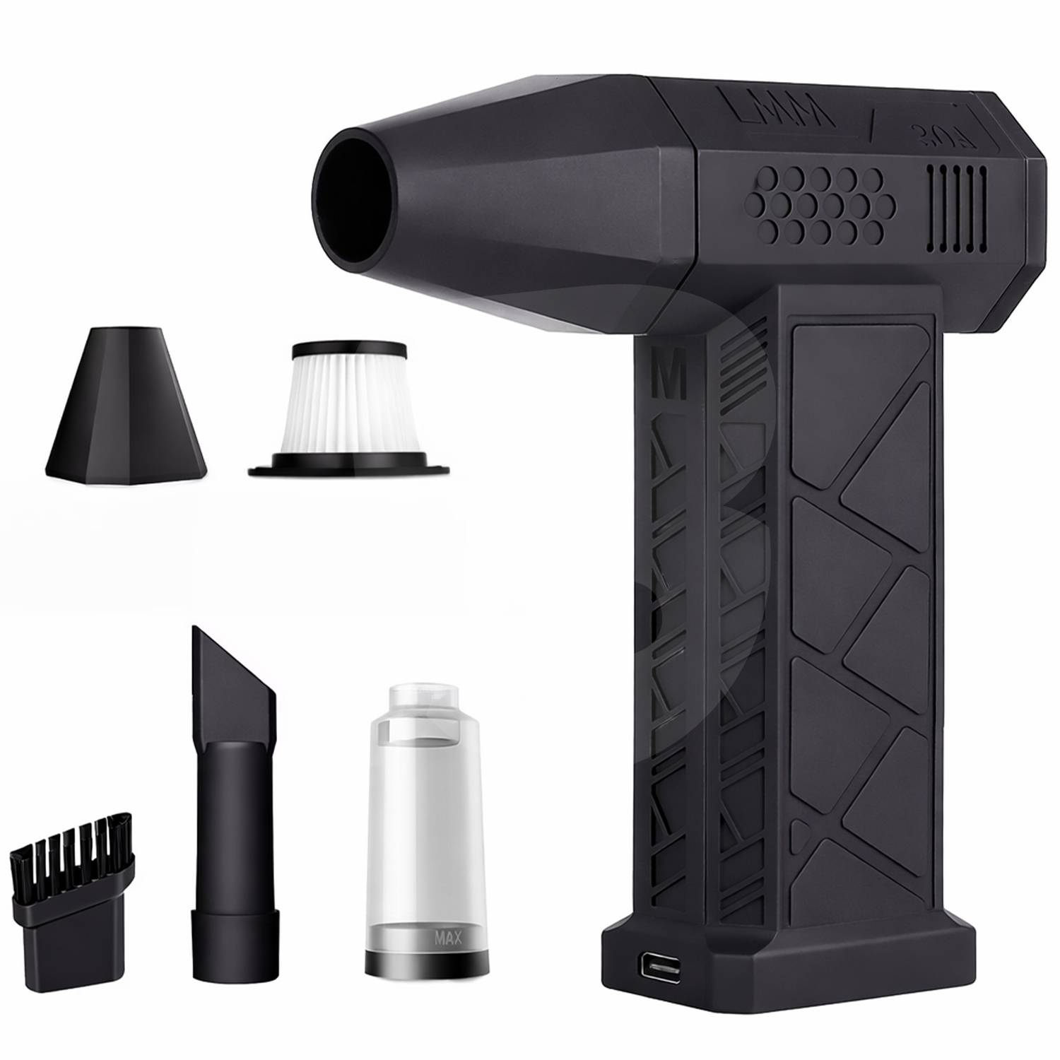 Suflanta de aer comprimat portabilă cu putere de până la 130.000 RPM este un dispozitiv performant, conceput pentru curățarea rapidă și eficientă a prafului, murdăriei și resturilor din spații greu accesibile. Datorită motorului de mare viteză și designului compact, acest produs reprezintă o alternativă modernă și reutilizabilă la spray-urile clasice cu aer comprimat, fiind ideal pentru utilizare en-gros în domenii precum IT, service electronic, auto, birouri, retail specializat sau uz casnic avansat.