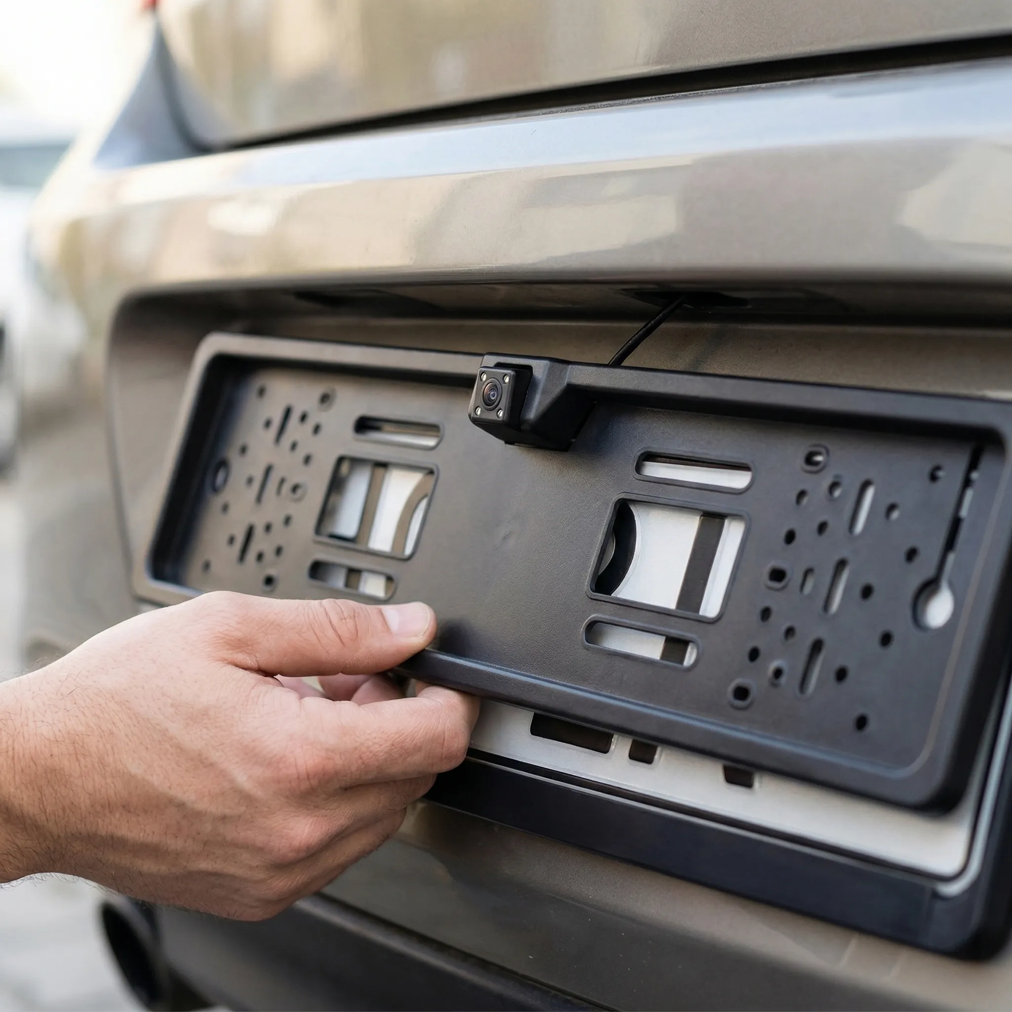 - Design Discret și Instalare Rapidă: Fiind integrată direct în suportul de număr, instalarea este neinvazivă. Nu trebuie să dai găuri suplimentare în caroserie; pur și simplu înlocuiești suportul vechi și conectezi cablurile la sistemul video al mașinii.