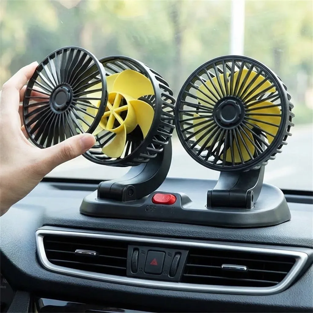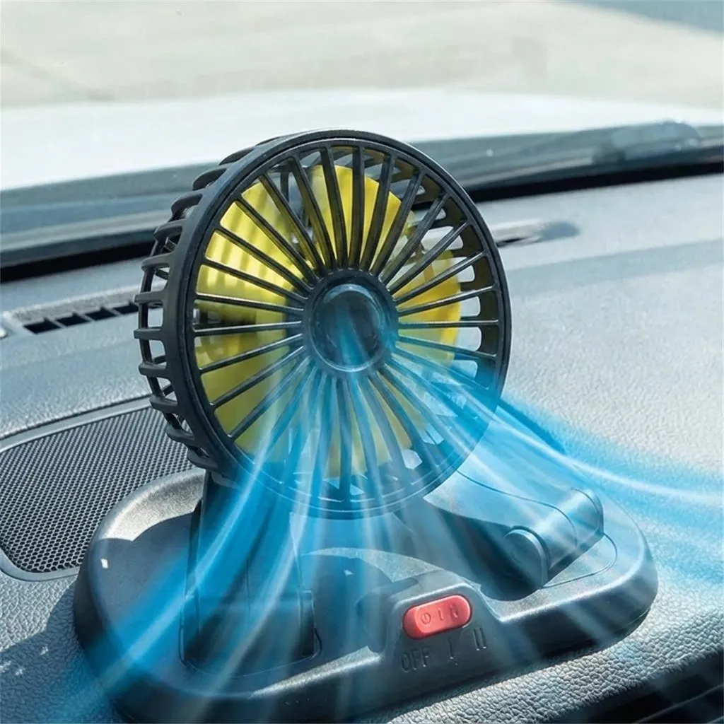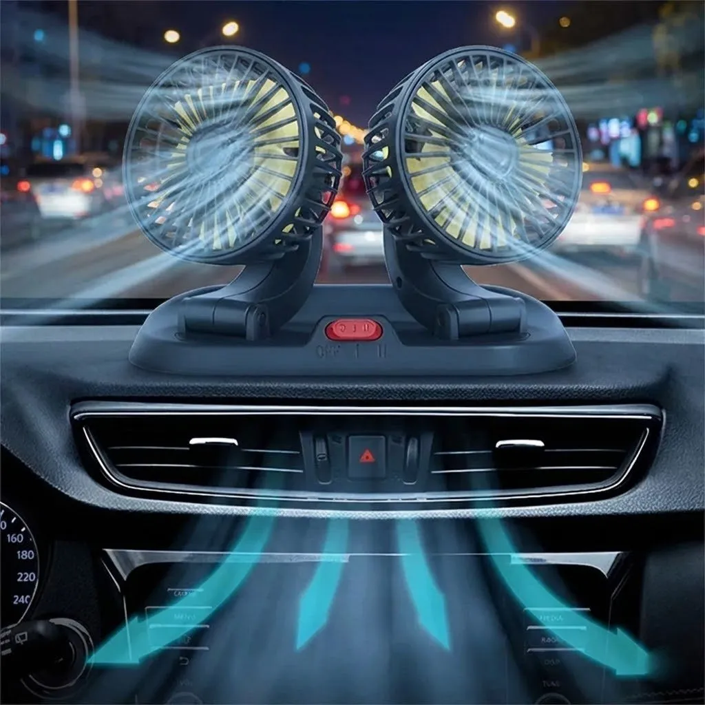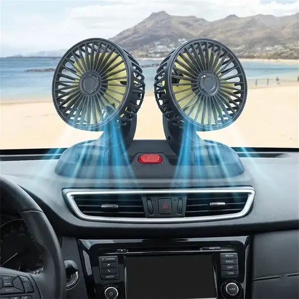 Inovația constă în cele două capete de ventilare care funcționează simultan, dar pot fi orientate independent. Indiferent de poziția în care te afli, poți roti ventilatorul la 360° pe orizontală și pe verticală pentru a direcționa fluxul de aer exact acolo unde ai nevoie – spre parbriz pentru dezaburire, spre pasageri sau spre animalele de companie din spate.