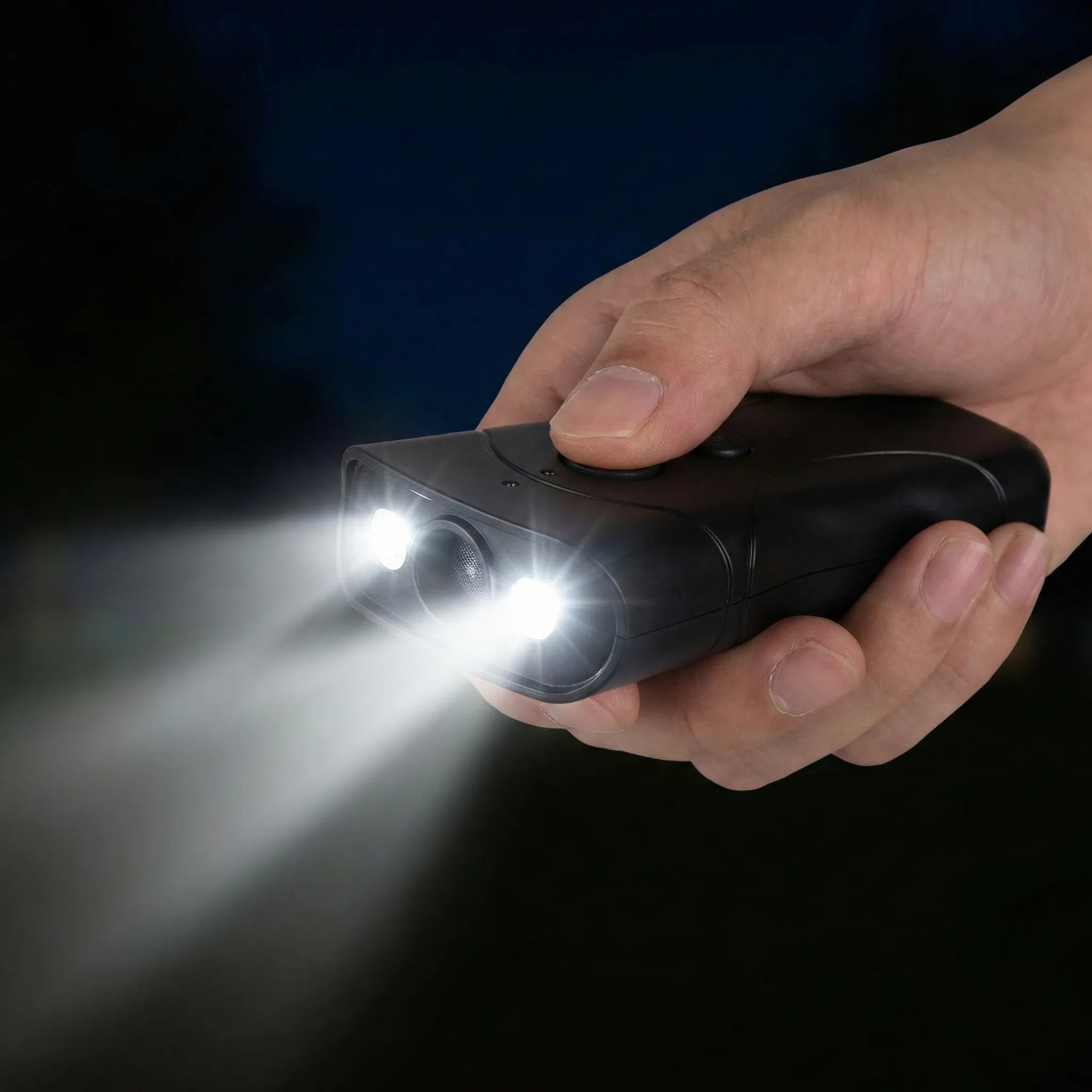 Vizibilitate Sporită cu LED-uri Ultra-strălucitoare: Siguranța ta pe timp de noapte este prioritară. Aparatul este dotat cu LED-uri puternice care amplifică efectul de descurajare printr-un semnal vizual intens, putând fi folosit și ca o lanternă clasică în zonele slab iluminate.