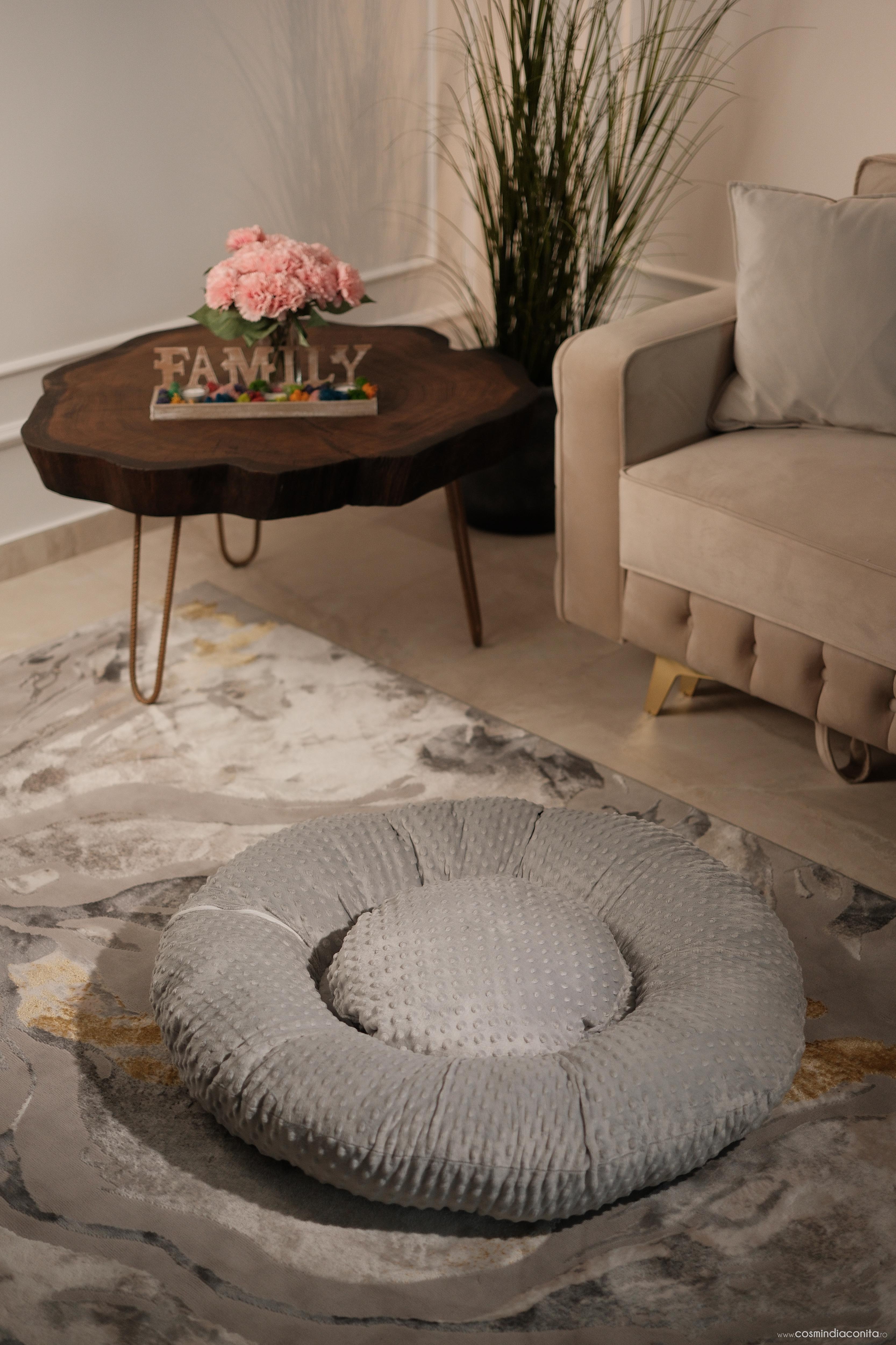- Dimensiuni Generoase: Diametru total de 85 cm x 85 cm, ideal pentru relaxarea deplină.