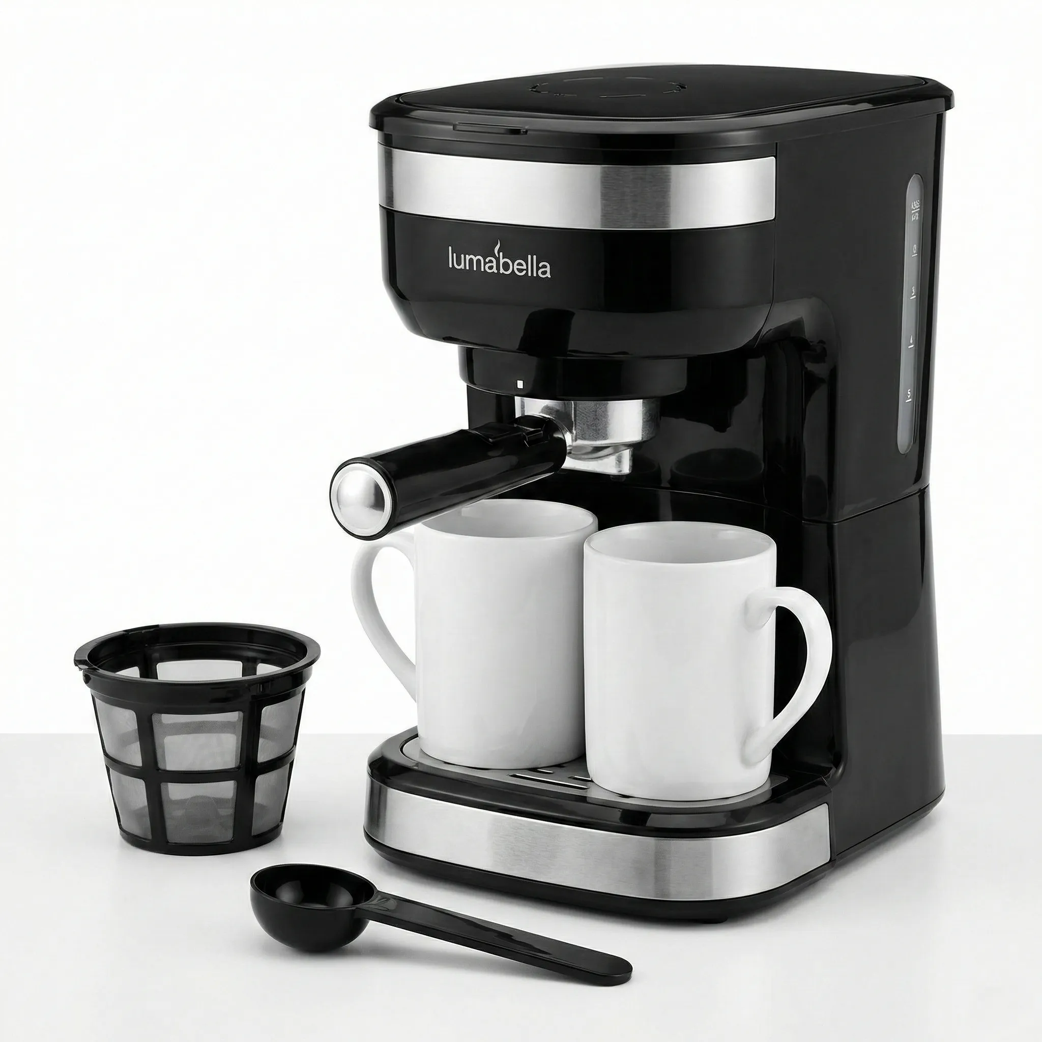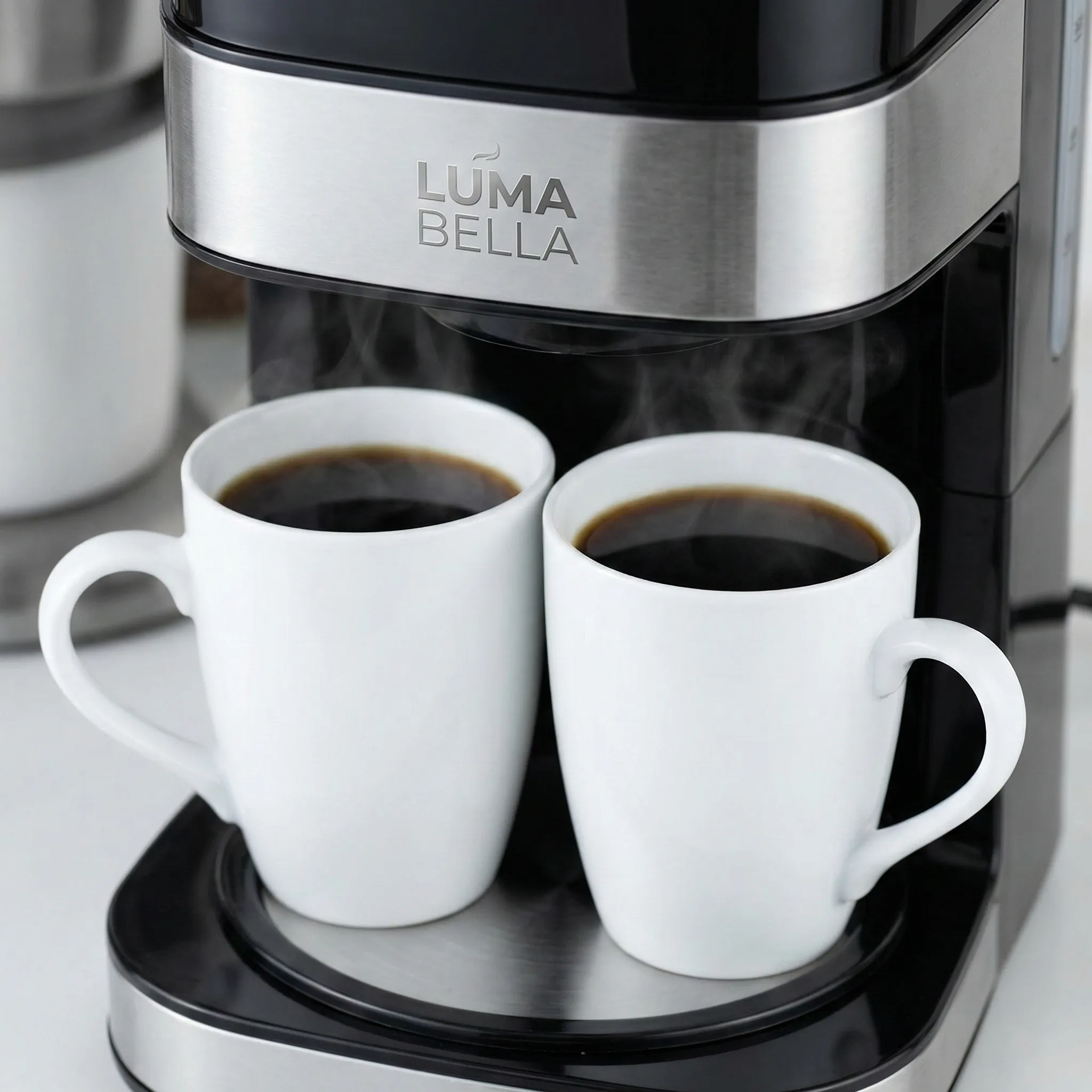 Savurează cafeaua preferată rapid și simplu, în confortul casei tale sau la birou! Transformă fiecare dimineață și fiecare pauză de relaxare într-o experiență plăcută cu Aparatul de cafea electric Luma Bella LB-54007. Cu un design compact, modern și extrem de funcțional, această cafetieră îți permite să prepari simultan două căni din băutura ta preferată, păstrând gustul autentic și aroma intensă a cafelei proaspăt măcinate.