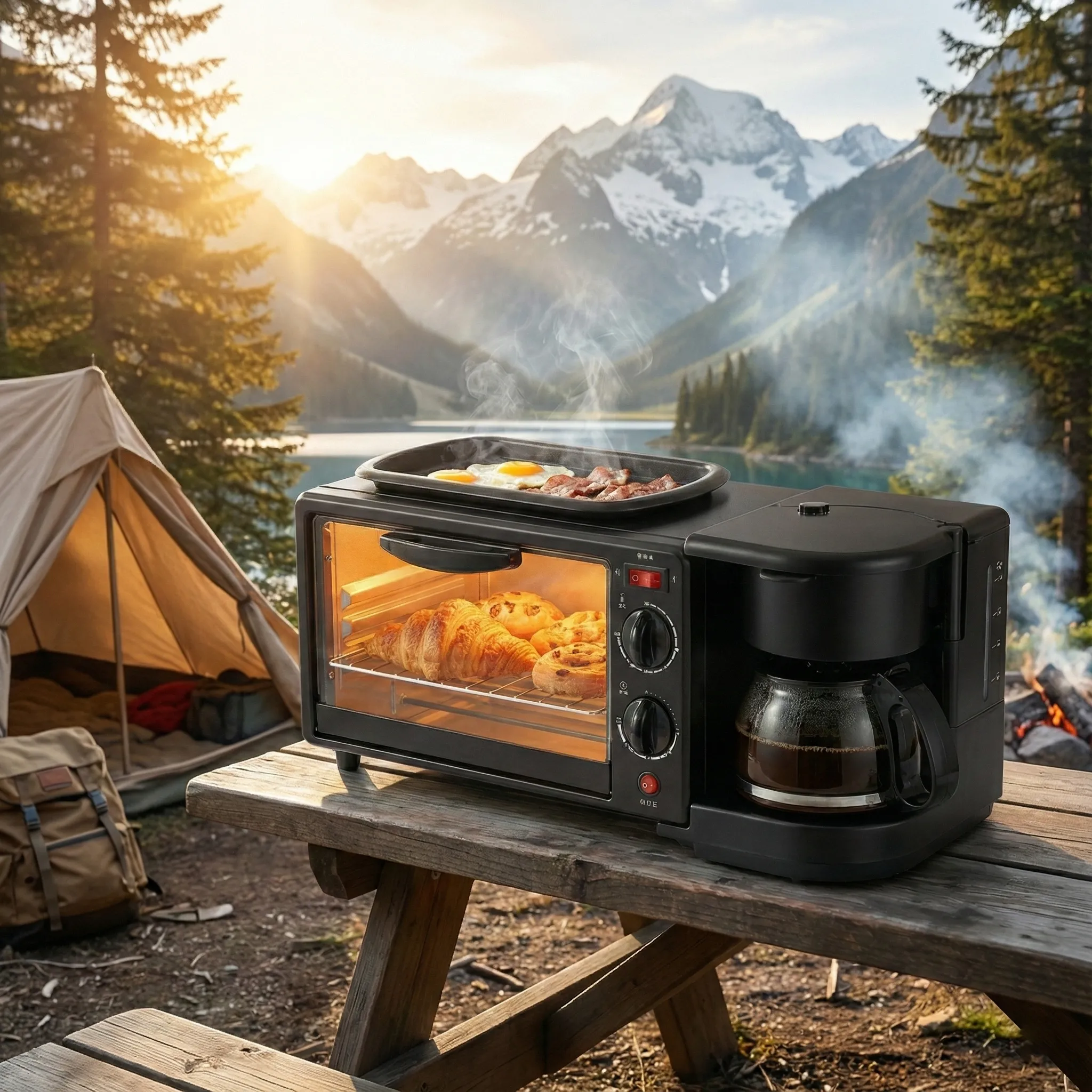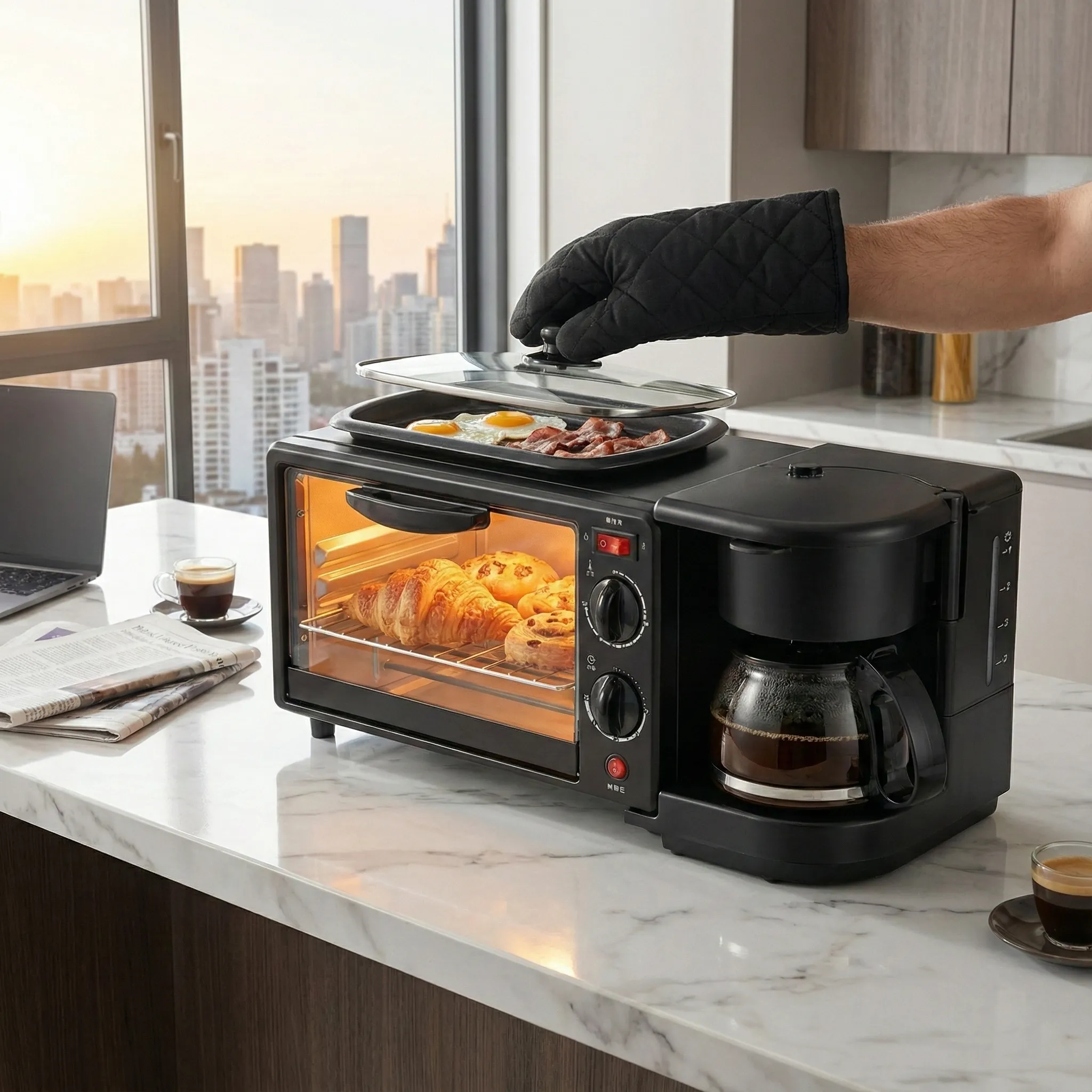 Te trezești devreme doar pentru a jongla între cafetieră, prăjitor și tigaie, încercând să pui pe masă un mic dejun cald? Oprește alergătura și simplifică-ți viața cu Aparatul Multifuncțional MorningStation. Conceput pentru eficiență maximă, acest centru de gătit compact reunește trei electrocasnice esențiale într-un singur dispozitiv elegant din oțel inoxidabil.