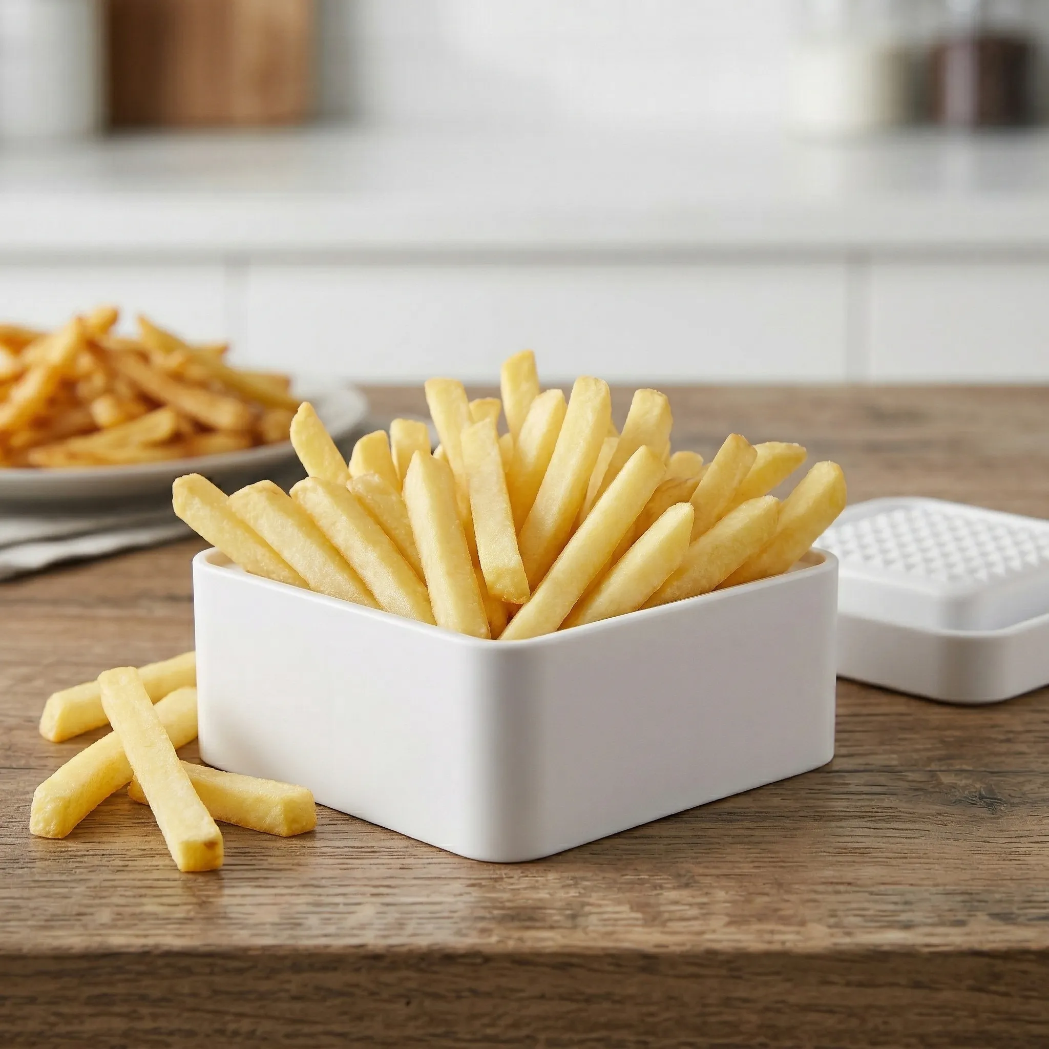 Uită de tăiatul manual anevoios și de feliile inegale. Cu feliatorul Perfect Fries, transformi orice cartof sau legumă într-o porție estetică de „pai”, gata de gătit. Este soluția ideală pentru cei care doresc să economisească timp fără a face compromisuri în ceea ce privește aspectul preparatelor.