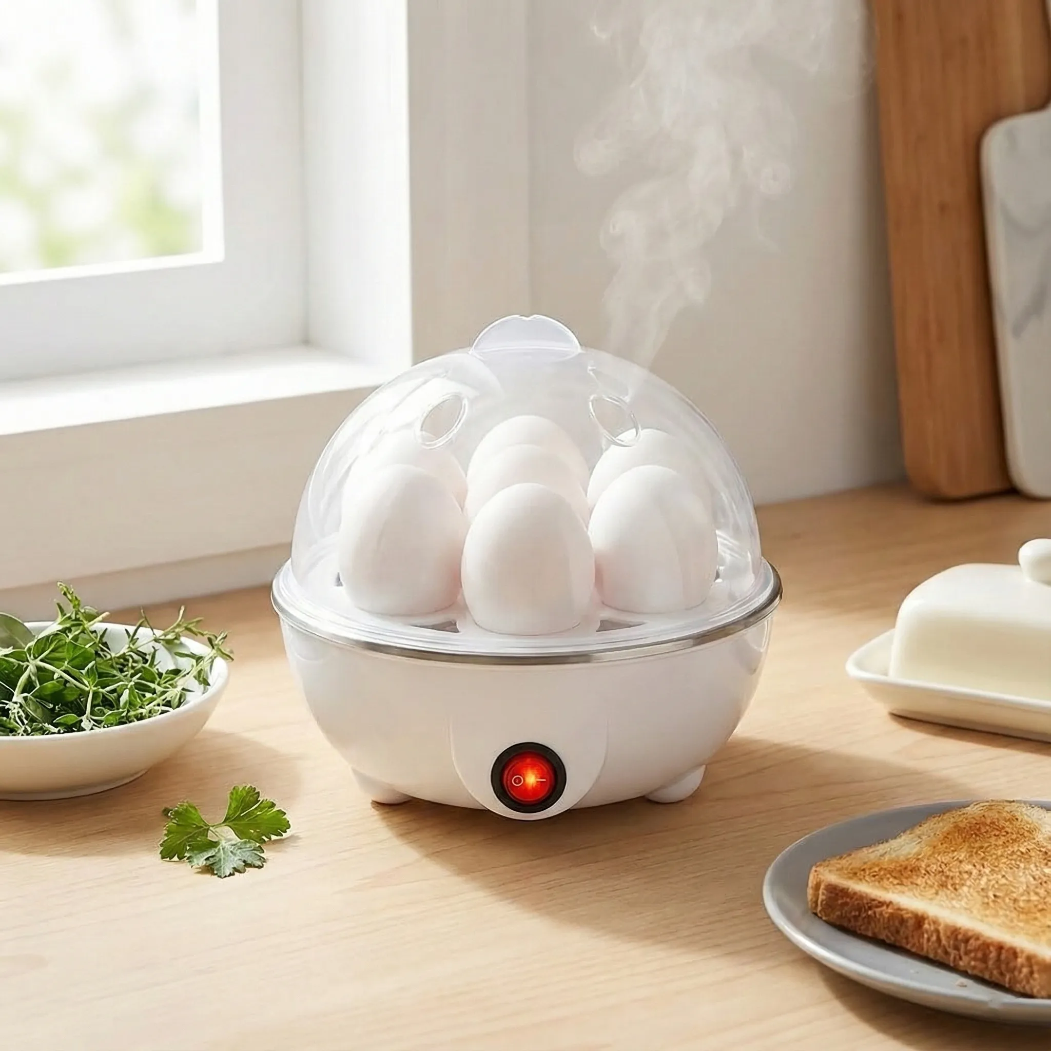Obține ouă fierte impecabil în fiecare dimineață, fără a păzi aragazul. Cu capacitatea de a găti simultan 7 ouă, acest aparat compact elimină complet ghicitul din bucătărie. Fie că le preferi moi, cleioase sau tari, tehnologia de gătire la abur îți garantează consistența ideală și un gust desăvârșit, automat.