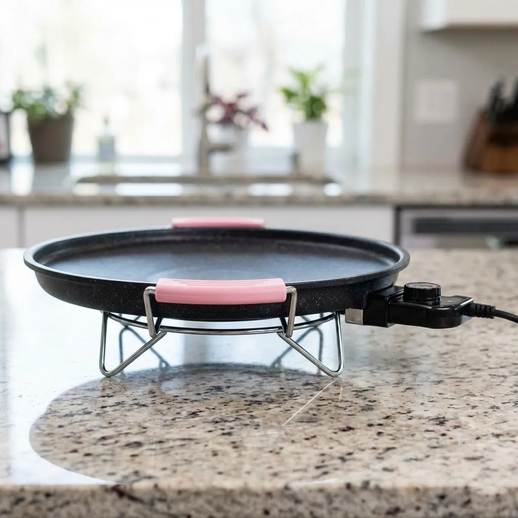 Combinația sofisticată de negru mat cu accente roșii transformă grătarul într-un obiect decorativ ce se integrează perfect în orice bucătărie modernă. Dimensiunea sa de 27,5 cm este optimizată pentru a fi așezată direct în centrul mesei, încurajând experiența interactivă în care fiecare invitat își poate pregăti porția preferată în timp ce socializează.