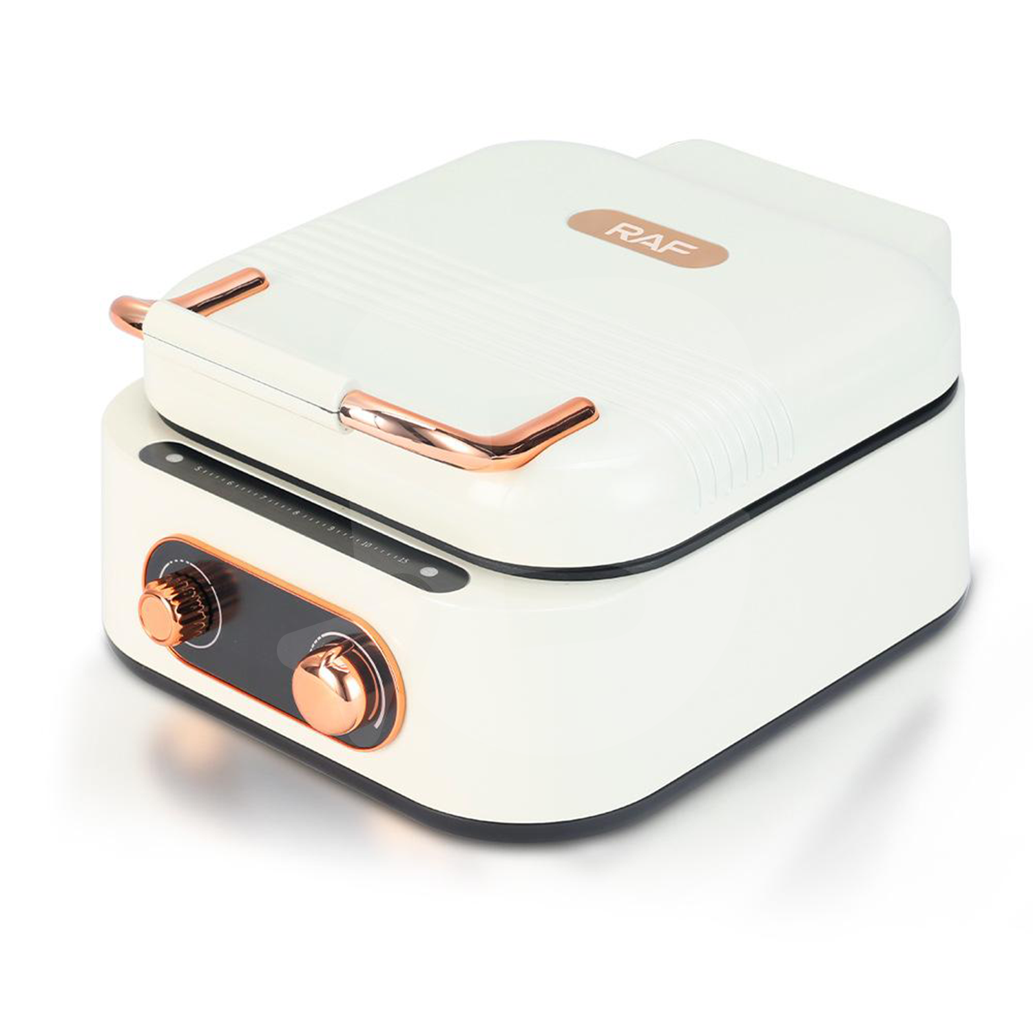 Designul compact, cu dimensiuni aproximative de 28,5 × 19,5 × 35,5 cm, face ca acest multicooker RAF® să fie ușor de integrat pe blaturi de bucătărie, mese de lucru sau în spații cu volum limitat. Mânerul superior și carcasa rezistentă permit manipularea sigură a aparatului, iar finisajele în alb cu accente metalice oferă un aspect modern și comercial.