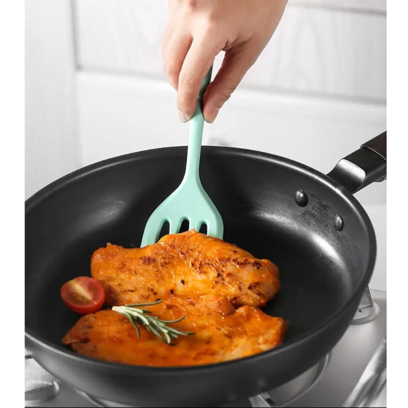 Fabricată din silicon alimentar de calitate superioară, paleta este ideală pentru tigăi și cratițe cu strat antiaderent, deoarece nu zgârie și nu afectează acoperirea acestora. Materialul suportă temperaturi ridicate, fiind potrivit pentru prăjire, rumenire, întoarcerea alimentelor sau servire directă din vas. În același timp, siliconul nu reține mirosuri și nu absoarbe grăsimi, contribuind la o experiență de gătit igienică și eficientă.