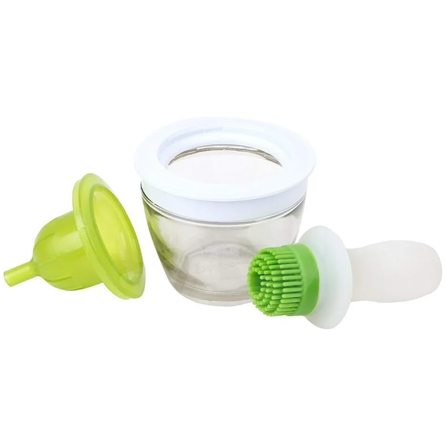 Pensula cu pompă și peri din silicon pentru ulei cu recipient din sticlă de 150 ml este un accesoriu practic și eficient pentru controlul precis al uleiului, untului sau altor lichide utilizate în bucătărie. Acest produs este conceput pentru a reduce risipa, a oferi dozare exactă și a facilita aplicarea uniformă a uleiului pe suprafețe de gătit și alimente.