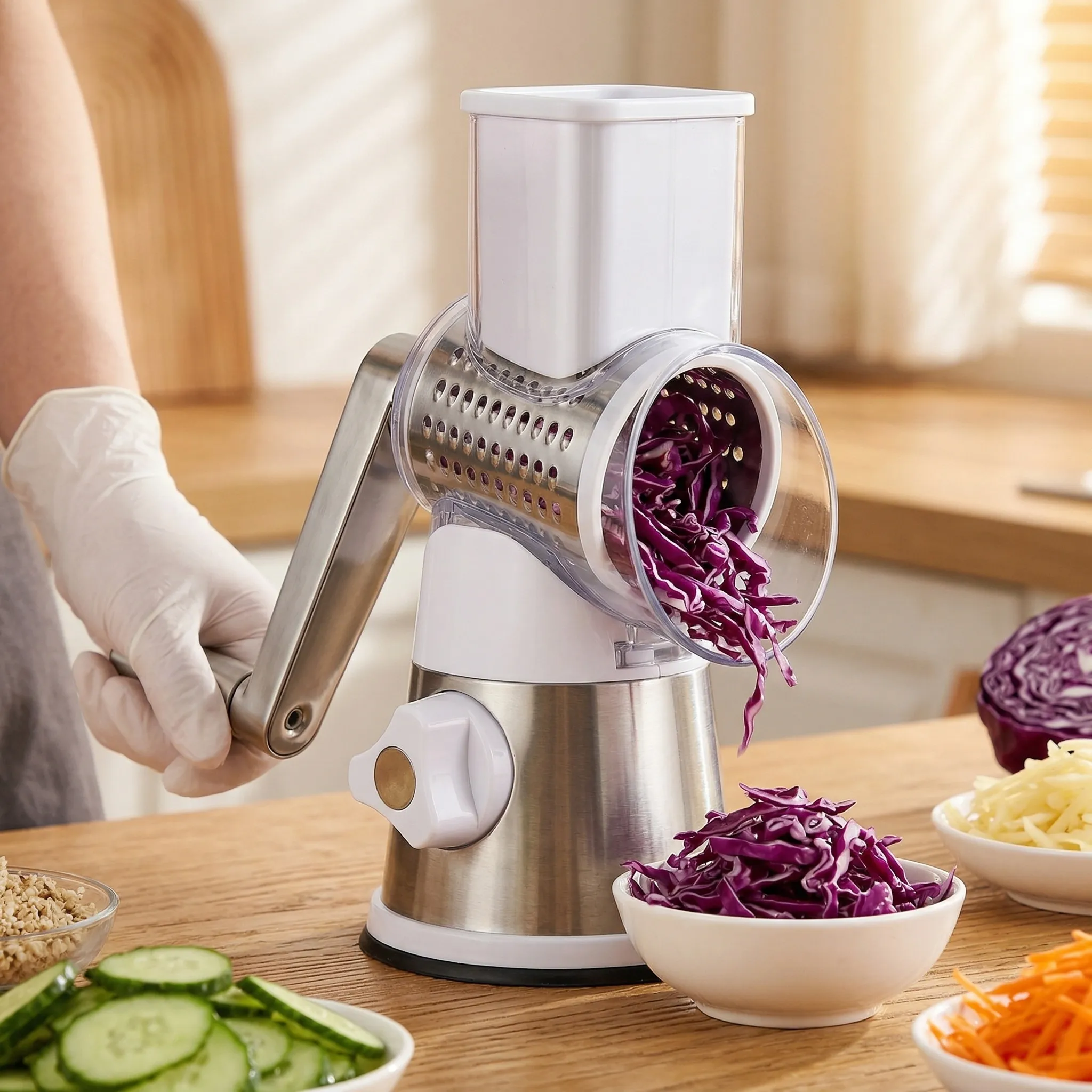 Reinventează modul în care pregătești masa cu Răzătoarea Manuală cu Manivelă din Inox! Acest instrument inovator este conceput pentru a elimina efortul și timpul pierdut cu răzătoarele tradiționale, oferindu-ți rezultate profesionale în câteva secunde, fără riscul de a te tăia.