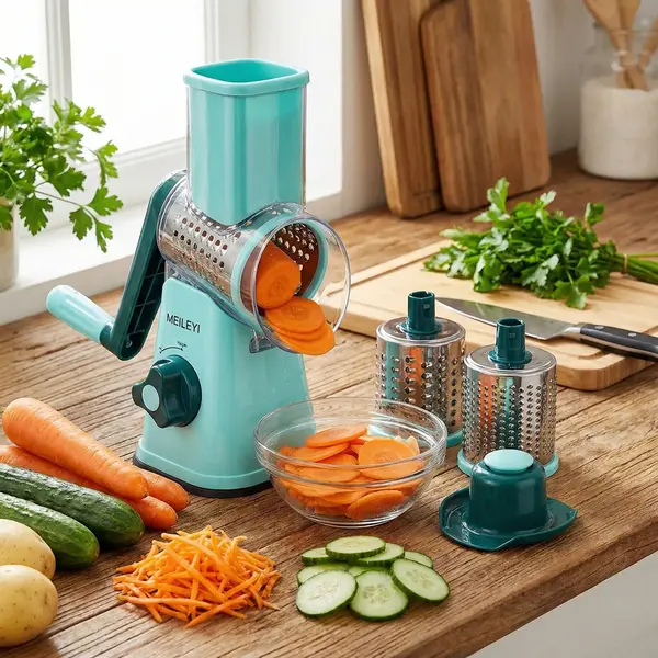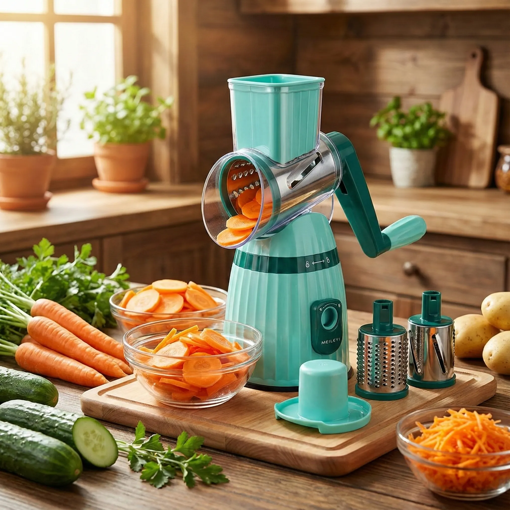 Te-ai săturat de minutele nesfârșite petrecute tocând legume cu un cuțitul sau de riscul de a te răni cu răzătoarele plate tradiționale? Pregătirea ingredientelor este adesea partea care consumă cel mai mult timp în bucătărie, dar cu Răzătoarea Multifuncțională cu Lame Rotative, totul devine surprinzător de simplu. Indiferent că pregătești o salată complexă, feliezi cartofi pentru prăjit sau razi morcovi pentru prăjituri, acest dispozitiv este asistentul tău de încredere care face munca grea în locul tău.
