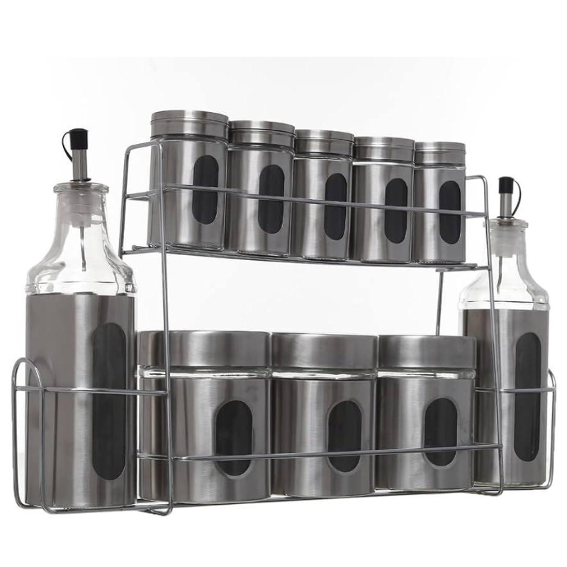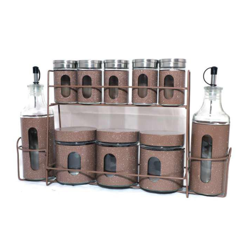 - Set Complet: 10 piese esențiale (oliviere, solnițe, recipiente condimente) + 1 suport central.