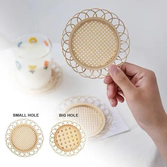 Adăugați un strop de natură și eleganță meselor tale cu aceste suporturi pentru pahare realizate manual din ratan natural, într-un stil boho chic inconfundabil. Aceste accesorii nu sunt doar elemente decorative deosebite, ci și soluții practice pentru protejarea suprafețelor delicate ale mobilierului. Datorită texturii împletite manual, fiecare suport are un caracter unic, fiind ideal pentru decorurile de tip rustic, vintage sau minimalist.