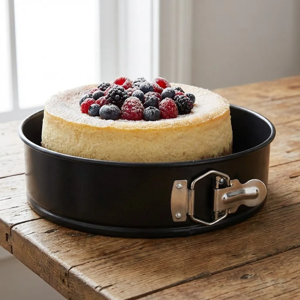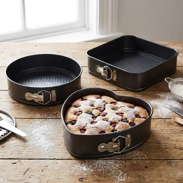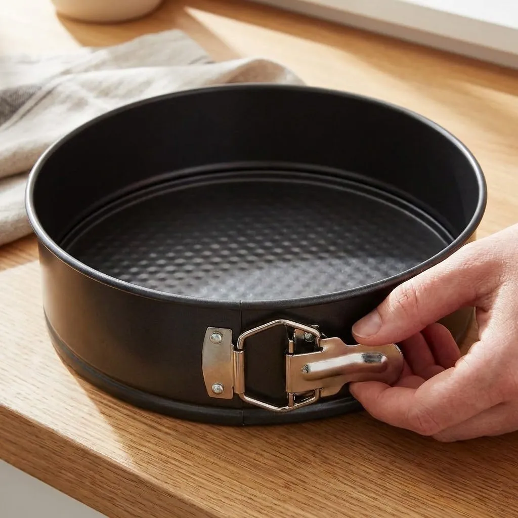 Uită de cuțitele folosite pentru a desprinde marginile. Fiecare tavă este echipată cu o clapetă laterală robustă care desface marginea metalică instantaneu. Această funcție, combinată cu baza detașabilă, îți permite să „ridici” pur și simplu forma de pe prăjitură, lăsând marginile netede și perfecte, gata pentru decorare.