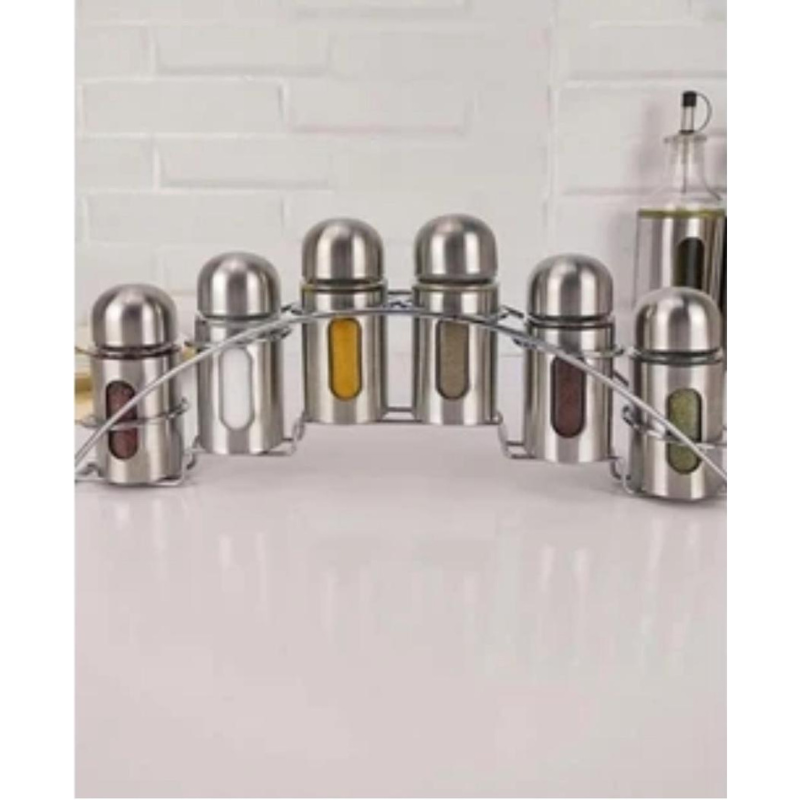 - Set Complet: Include 6 recipiente de sticlă și un suport metalic robust.