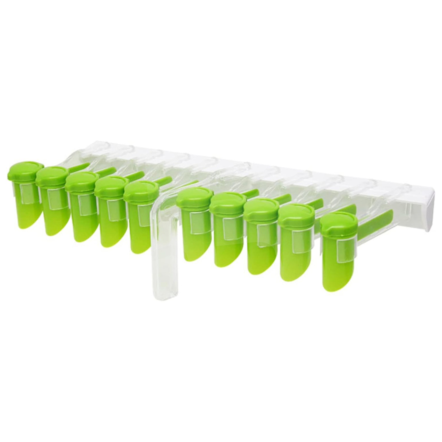 Acest set de 10 cleme cu orificii pentru plicuri de condimente, prevăzut cu suport de prindere, este soluția practică pentru organizarea și utilizarea eficientă a condimentelor din plicuri în bucătării profesionale, restaurante, unități HoReCa, magazine alimentare și pentru vânzare en-gros.