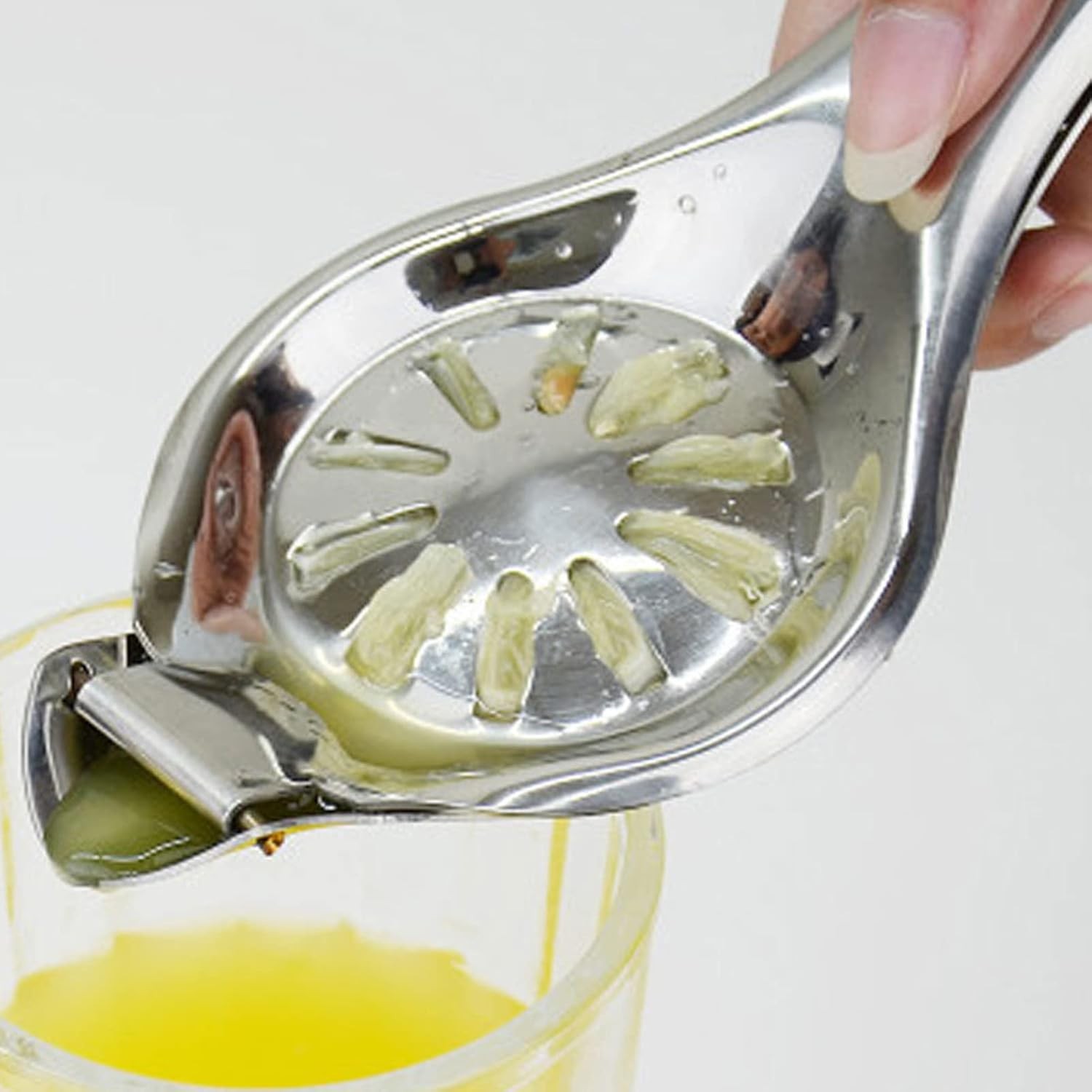 Fabricat integral din inox rezistent, acest storcător oferă o durată de viață îndelungată chiar și în condiții de utilizare intensă. Materialul metalic nu reține mirosuri, nu se pătează și nu reacționează cu aciditatea citricelor, păstrând sucul curat și gustul natural. Finisajul argintiu lucios conferă un aspect profesional, potrivit pentru bucătării deschise sau spații unde ustensilele sunt vizibile pentru clienți.