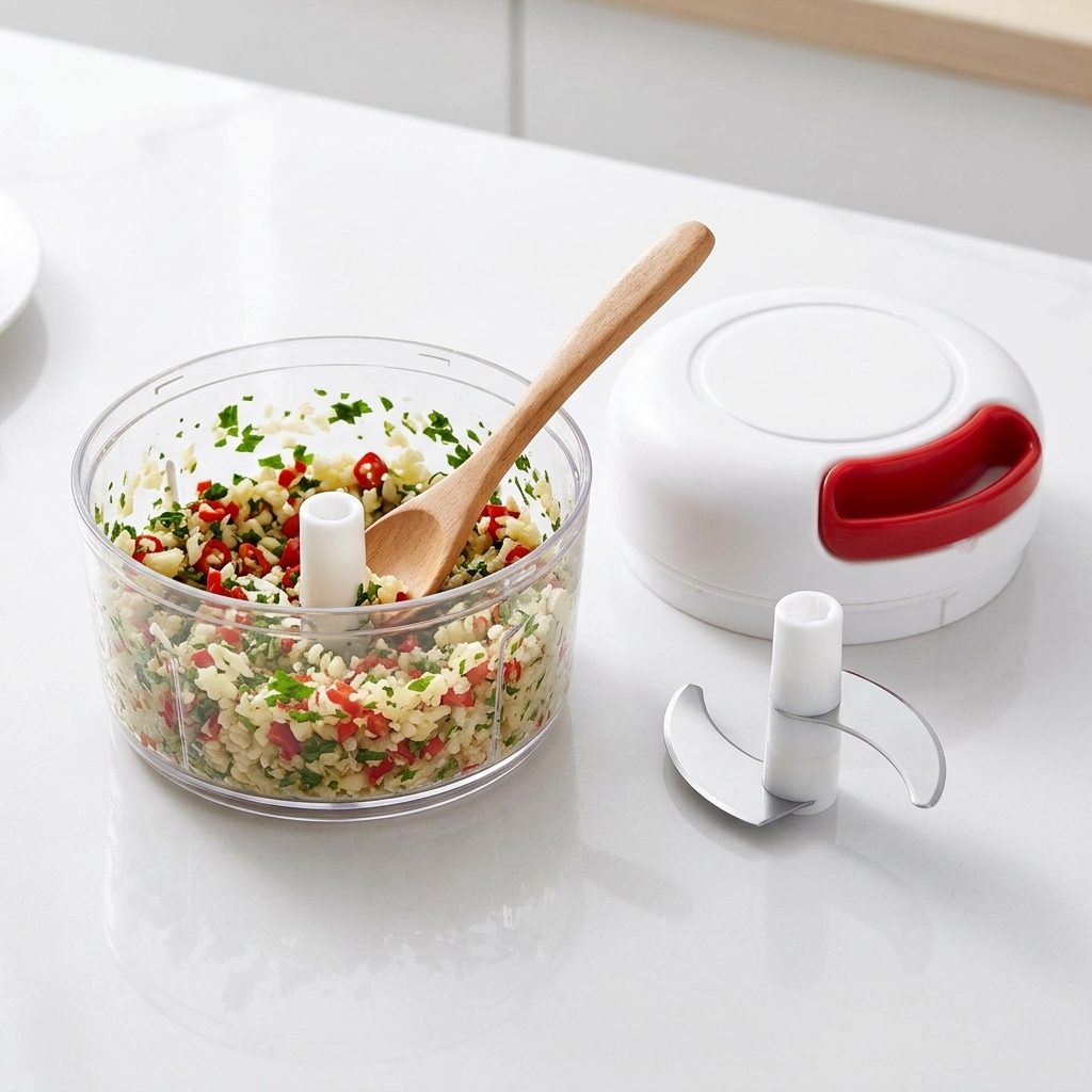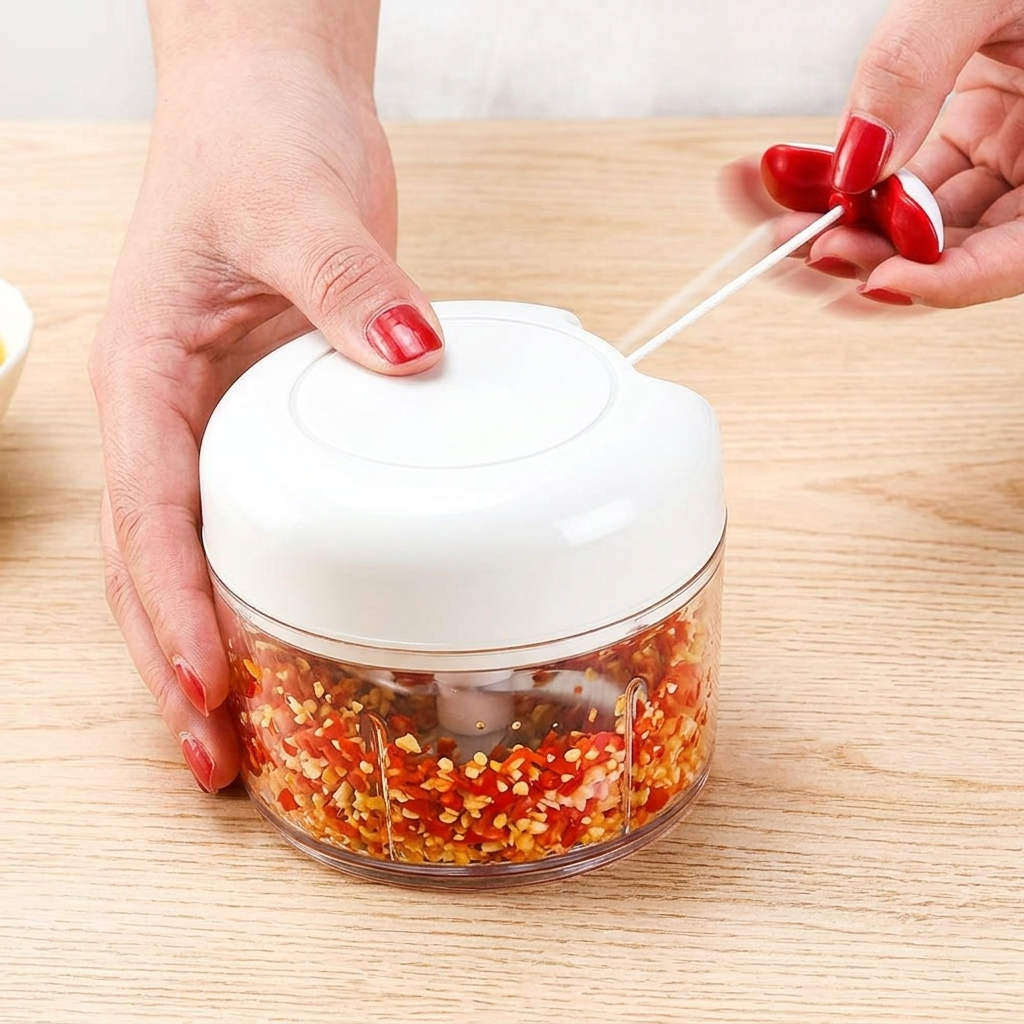Compact, eficient și ușor de manevrat, acest aparat transformă tăierea, mărunțirea sau tocarea legumelor într-o activitate simplă și rapidă. Datorită sistemului inteligent de acționare cu sfoară, ai control total asupra vitezei și gradului de mărunțire, fără electricitate sau cabluri inestetice. Este perfect pentru ceapă, usturoi, morcovi, ardei, fructe, verdeață sau chiar bucățele de carne de pui – totul în câteva secunde.
