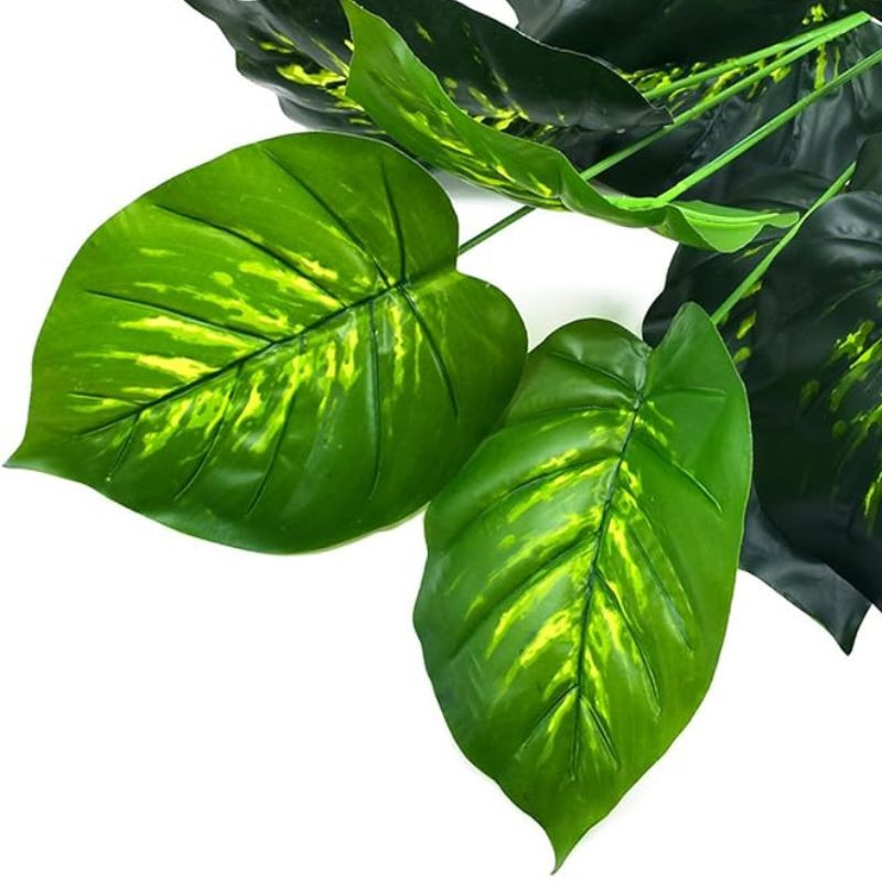 Adăugați o notă de prospețime tropicală decorului dumneavoastră cu acest buchet de frunze artificiale de o calitate superioară. Cu o înălțime de 42 cm, acest aranjament este compus din 8 frunze mari, cu un design ce imită fidel nervurile și textura plantelor naturale exotice. Este alegerea perfectă pentru a aduce un plus de verdeață în spațiile interioare unde lumina naturală este insuficientă.