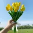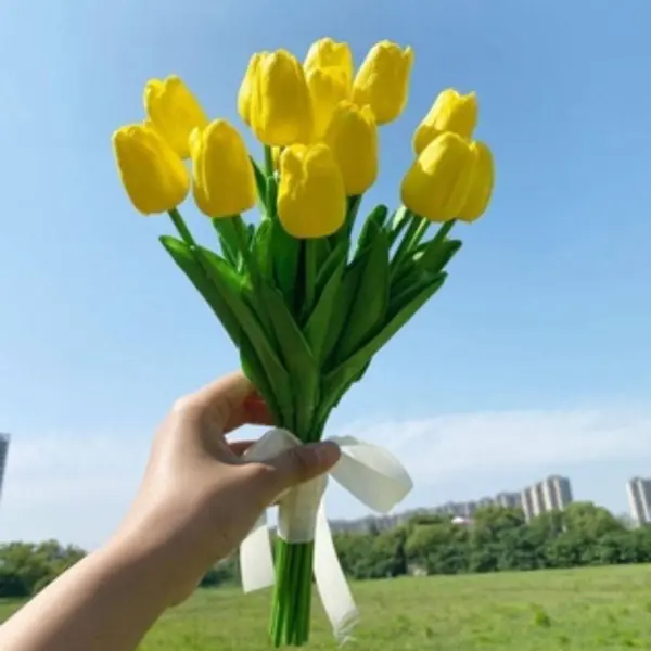 Aduceți prospețimea și eleganța primăverii în locuința dumneavoastră cu acest buchet de lalele artificiale de o calitate excepțională. Având o înălțime totală de 33 cm, aceste flori sunt create pentru a imita perfect aspectul și textura lalelelor naturale, oferind un decor rafinat care nu se ofilește niciodată. Sunt alegerea ideală pentru vaze de dimensiuni medii, aranjamente de masă sau pentru a crea un colț plin de viață în birou ori acasă.