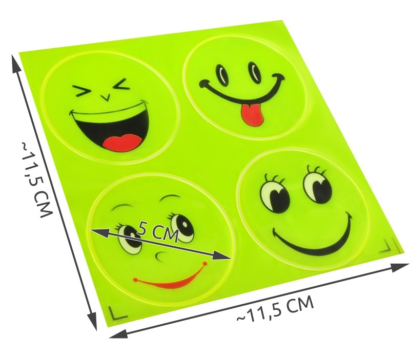 - Design: Model clasic Smiley Face (galben reflectorizant).