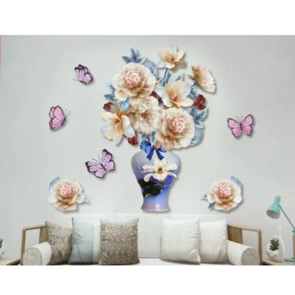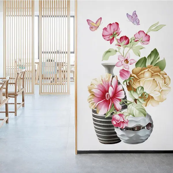 Adăugați o notă de prospețime și rafinament oricărei încăperi cu ajutorul acestui sticker decorativ 3D cu vază și flori. Cu dimensiunea optimă de 40 x 30 cm, această piesă decorativă folosește o grafică de înaltă definiție pentru a simula o nișă realistă în perete, oferind o iluzie de profunzime spectaculoasă. Designul redă un aranjament floral bogat într-o vază elegantă, fiind soluția ideală pentru a aduce natura mai aproape de spațiul dumneavoastră personal, fără a ocupa spațiu fizic pe mobilier.