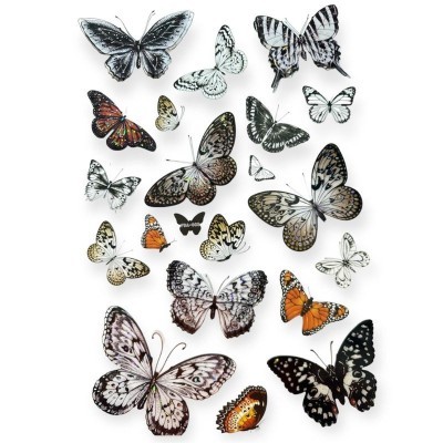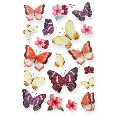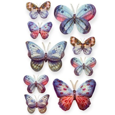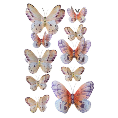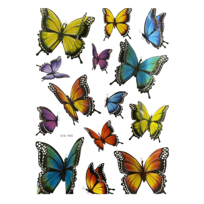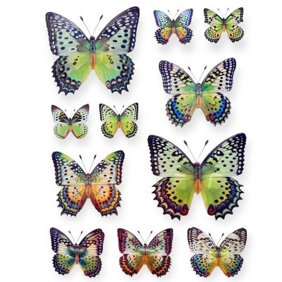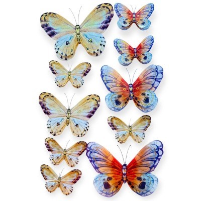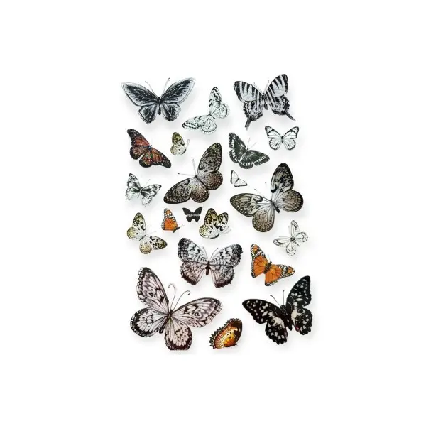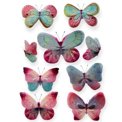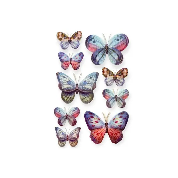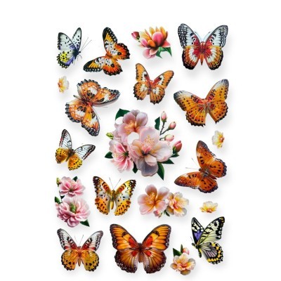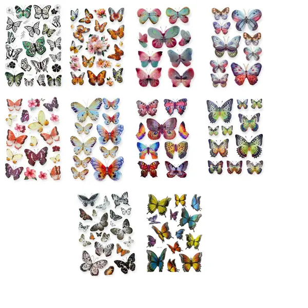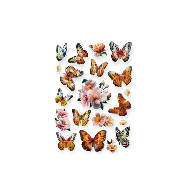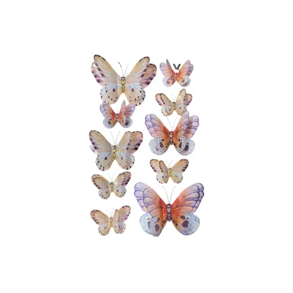 - Design: Fluturi în diverse mărimi și culori vibrante (multicolor).