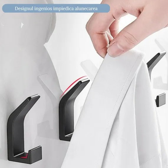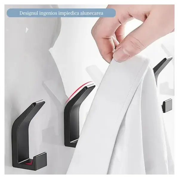 - Design: Minimalist, cu margini finisate pentru a preveni deteriorarea obiectelor agățate.