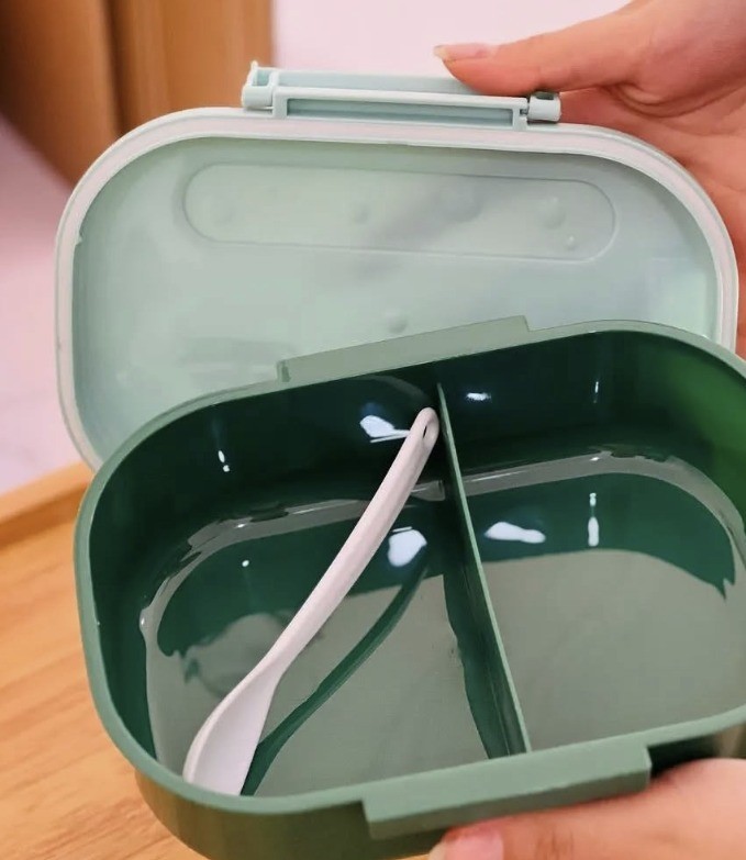 Din punct de vedere funcțional, cutia dispune de un sistem de închidere sigur, cu clape laterale ușor de manevrat chiar și de către mâinile mici, prevenind deschiderea accidentală în rucsac. Capacul este prevăzut cu o garnitură sau un sistem de etanșare care păstrează prospețimea alimentelor pentru mai mult timp. Este un accesoriu durabil, ușor de igienizat (fiind compatibil cu mașina de spălat vase) și reprezintă o alternativă ecologică la ambalajele de unică folosință.