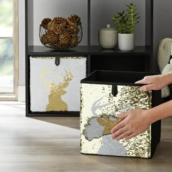 Adăugați un strop de magie și strălucire organizării zilnice cu această cutie de depozitare decorată cu paiete. Având dimensiuni de 35 x 24.9 x 21.5 cm, acest organizator nu este doar o soluție practică pentru depozitarea obiectelor, ci și un element decorativ deosebit, ideal pentru camera copiilor, dormitoare moderne sau spații de joacă.