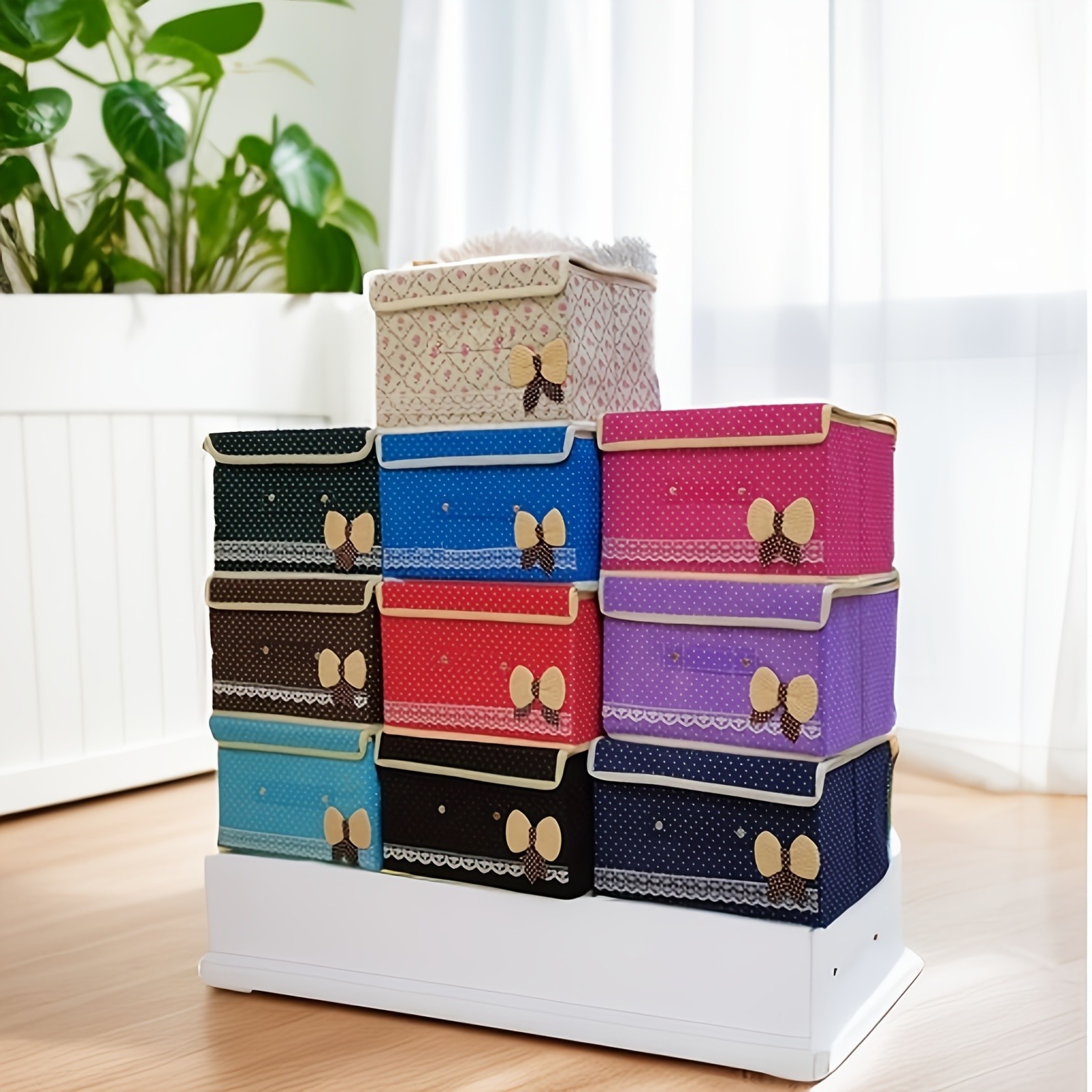 Din punct de vedere funcțional, această cutie este complet pliabilă. Atunci când nu este utilizată, poate fi strânsă rapid pentru a economisi spațiu, redevenind plată în doar câteva secunde. Materialul textil este ușor de întreținut și oferă o protecție excelentă împotriva prafului. Este soluția cromatică și practică ideală pentru a crea un aspect vizual unitar și curat în dressing, baie sau camera copiilor.