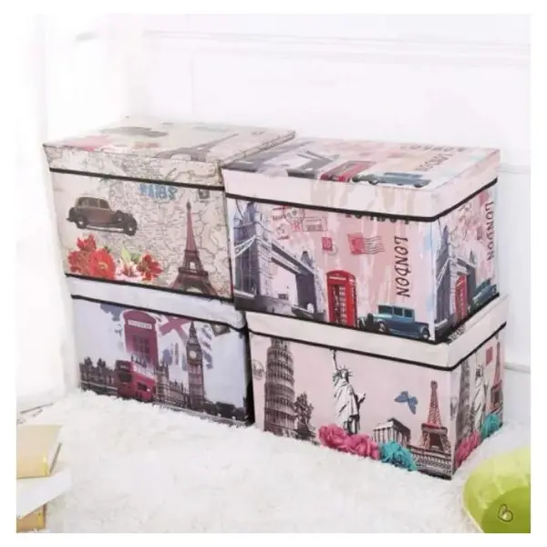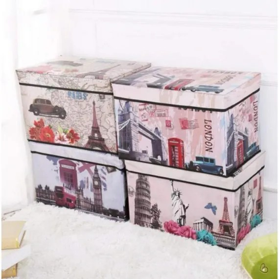 Din punct de vedere funcțional, această cutie este complet pliabilă. Atunci când nu este utilizată, poate fi strânsă rapid pentru a economisi spațiu, redevenind plată în doar câteva secunde. Materialul textil este ușor de întreținut și oferă o protecție excelentă împotriva prafului. Este soluția cromatică și practică ideală pentru a crea un aspect vizual unitar și curat în dressing, baie sau camera copiilor.