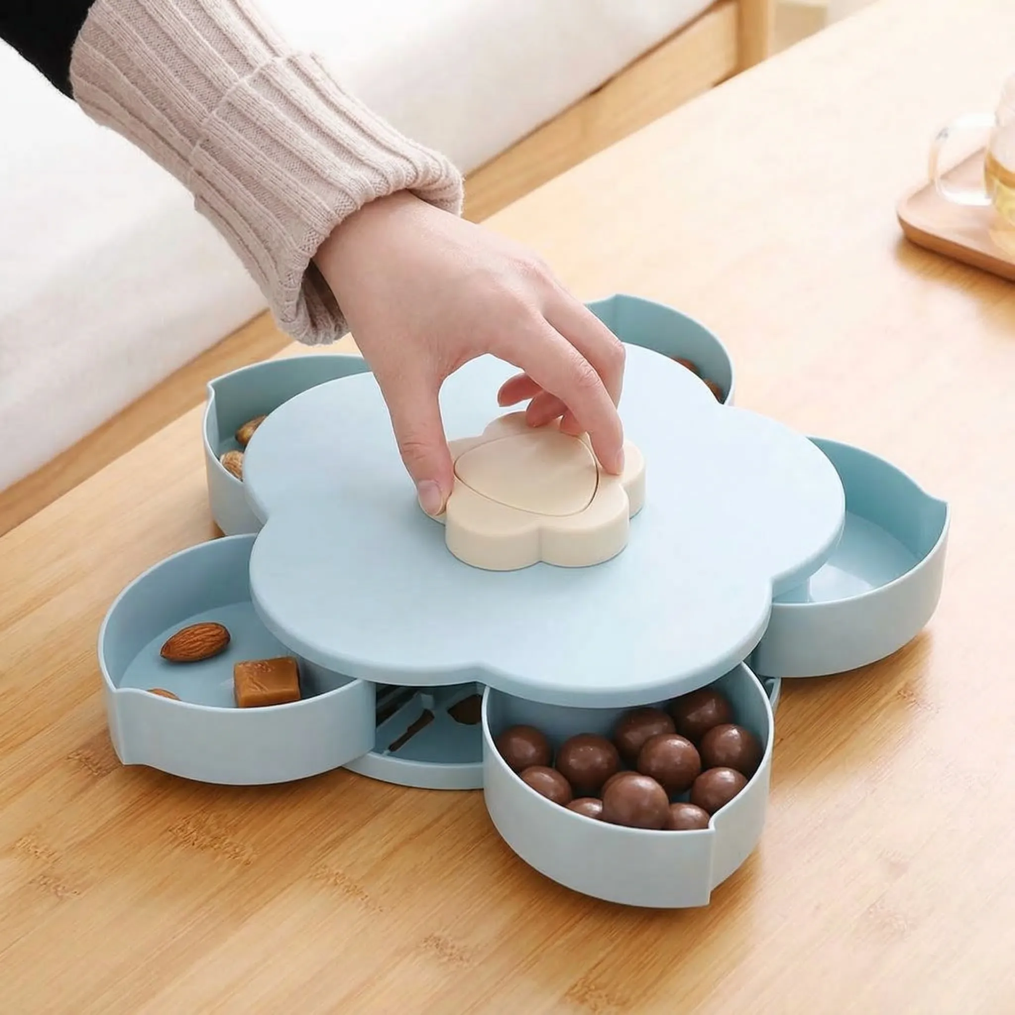 Ideală pentru orice context: Fie că organizezi o petrecere de aniversare, o seară de jocuri sau pur și simplu vrei să ai gustările la îndemână în timp ce lucrezi, această cutie rotativă este soluția perfectă pentru o masă organizată și un aspect vizual deosebit.