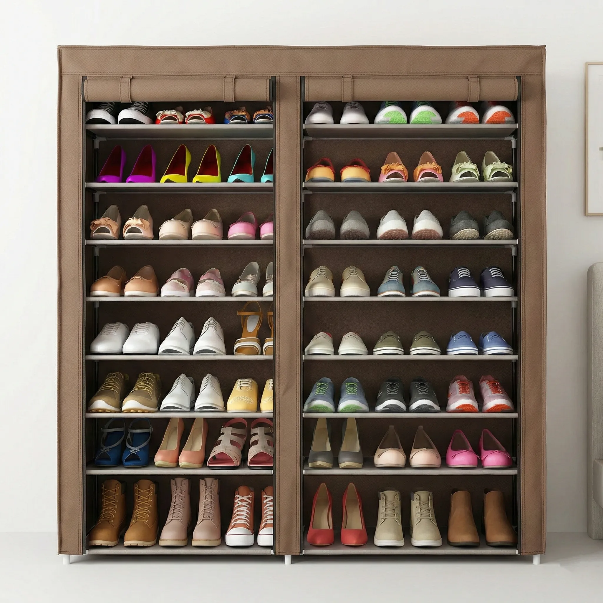 - Capacitate Generoasă (12 Rafturi): Oferă spațiu suficient pentru toate tipurile de încălțăminte, de la pantofi sport și sandale, până la ghete sau pantofi eleganți de seară. Totul este vizibil și ușor de accesat.