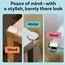 Siliconul utilizat este unul moale, dar extrem de dens, având o capacitate superioară de absorbție a energiei de impact. Forma sferică a protecției acoperă complet colțul mobilierului, eliminând orice punct de contact ascuțit. În poze se poate vedea stratul autoadeziv pre-aplicat (sau inclus în pachet), care asigură o fixare puternică și de lungă durată pe diverse suprafețe: sticlă, lemn, metal sau plastic. Un avantaj major pentru utilizatorul final este faptul că aceste protecții pot fi îndepărtate fără a lăsa urme de reziduuri lipicioase sau a deteriora finisajul mobilierului, un aspect tehnic foarte apreciat de comercianți și clienți deopotrivă.
