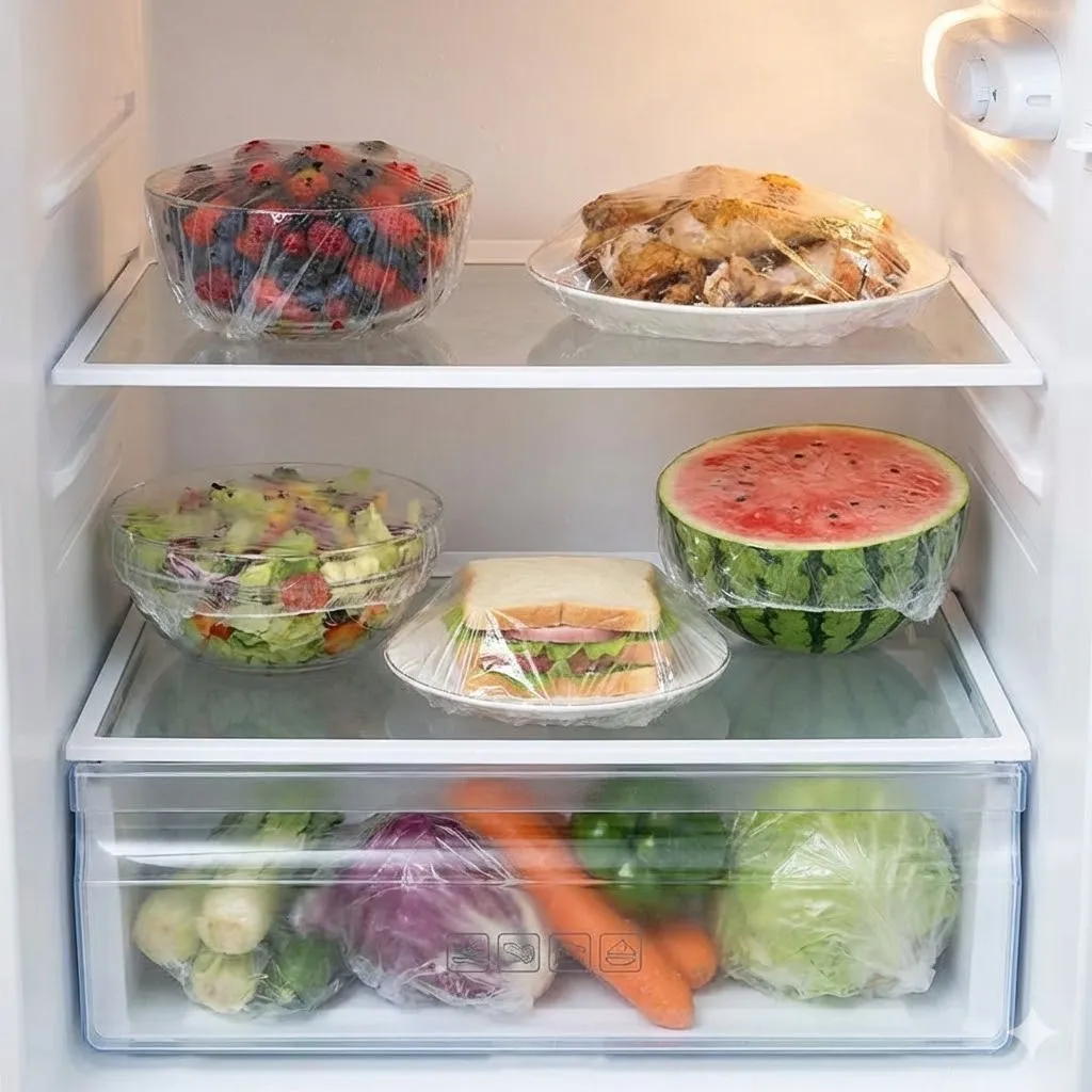 Sănătatea familiei tale este fundamentală. Capacele sunt fabricate din polietilenă/nylon de înaltă densitate, un material certificat pentru contactul cu alimentele, fiind complet inodor și rezistent la umezeală. Spre deosebire de foliile PVC ieftine, acestea nu elimină substanțe chimice și își păstrează proprietățile elastice chiar și după utilizări repetate.