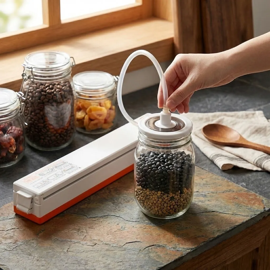 - Beneficii: Previne oxidarea, menține aroma, economisește spațiu