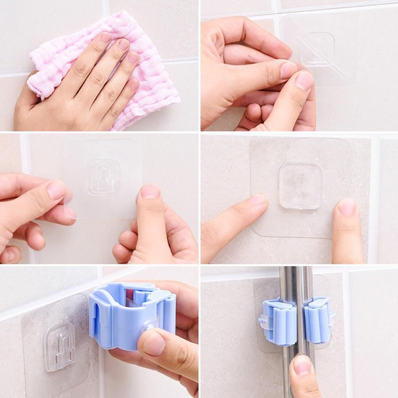 Montajul se realizează rapid, fără găurire sau unelte, datorită bazei autoadezive puternice. Suportul se aplică pe suprafețe netede precum faianță, sticlă, metal sau plastic, fiind ideal pentru bucătării, băi, spații de depozitare, balcoane sau camere tehnice. Pozele demonstrează clar procesul de montare pas cu pas, precum și rezistența suportului la umezeală și contact cu apa.