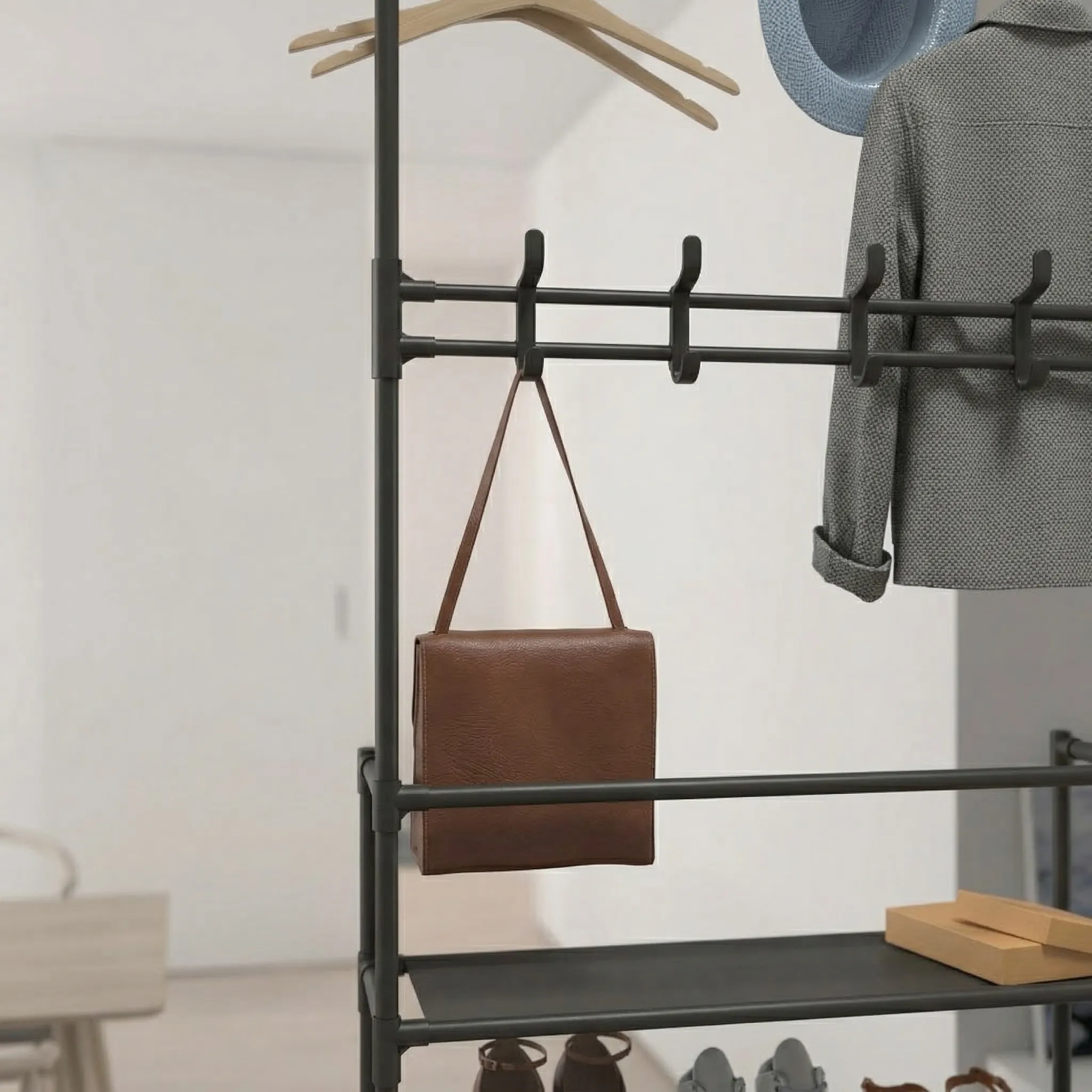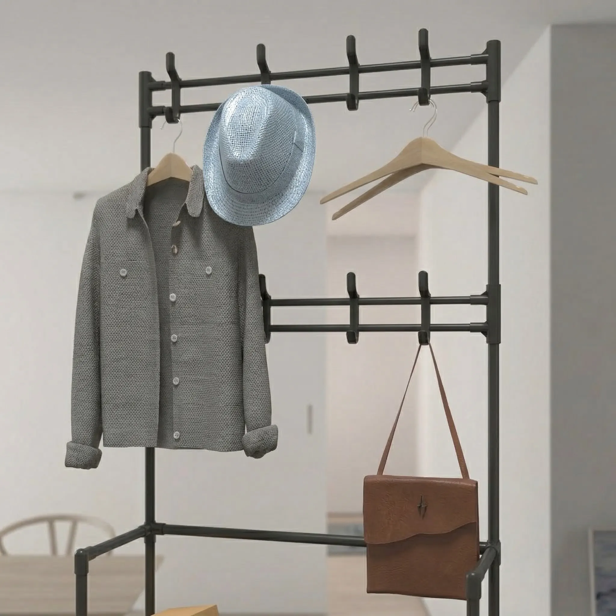 Cu o structură metalică stabilă și design modern, acest organizator oferă suficient spațiu pentru întreaga familie, menținând ordinea în hol, dressing sau dormitor. Designul său minimalist se integrează perfect în orice decor interior, de la cel clasic la cel contemporan.