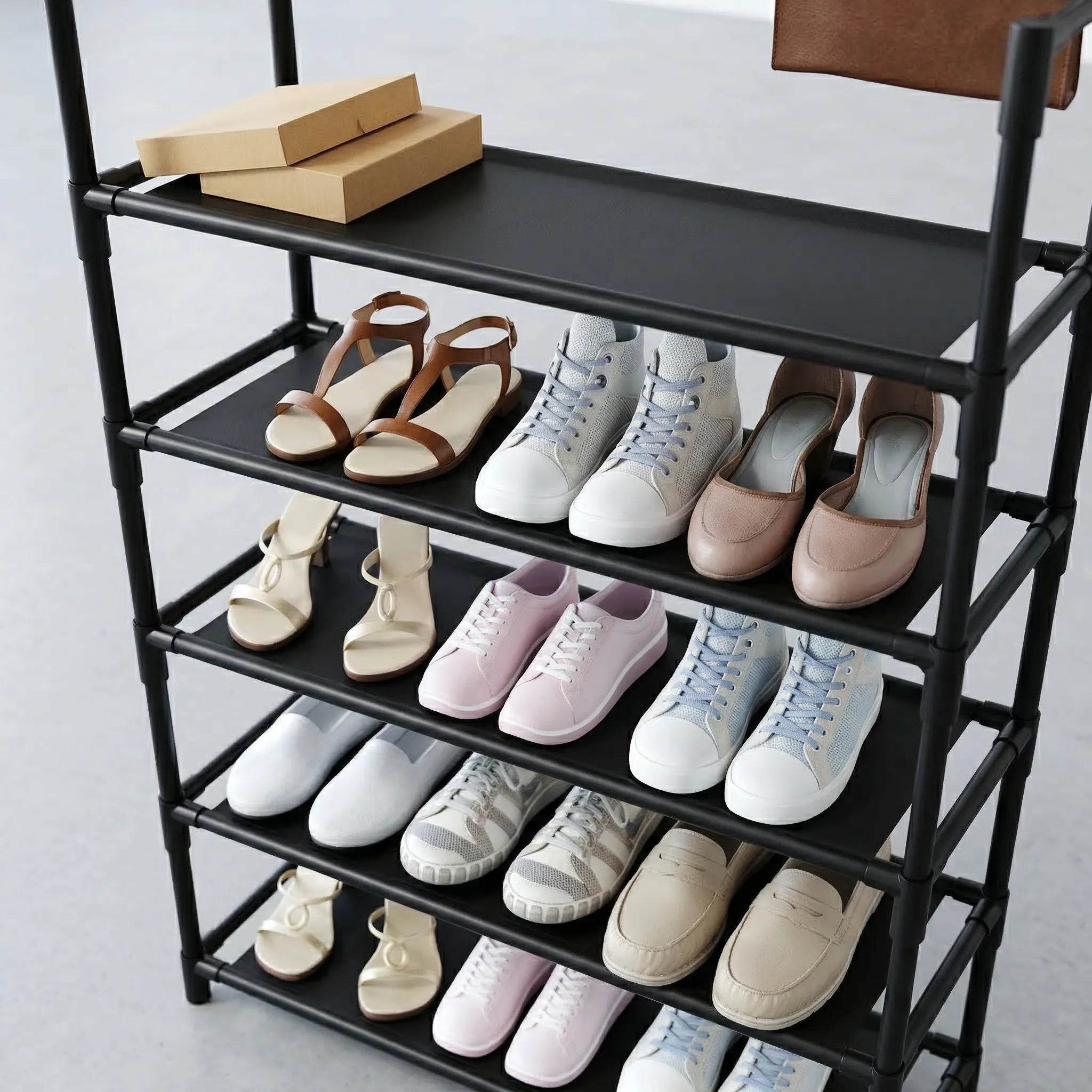 Păstrează-ți încălțămintea organizată și spațiul curat cu suportul pentru pantofi cu 4 sau 5 straturi, soluția practică și elegantă pentru depozitarea eficientă a pantofilor, cizmelor și sneakerșilor!