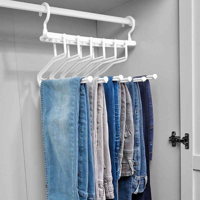 Umerașul multifuncțional pentru pantaloni este ideal pentru organizarea eficientă a mai multor perechi de pantaloni într-un spațiu redus. Prin utilizarea unui singur umeraș, se pot depozita mai multe articole, ceea ce îl face potrivit pentru dulapuri mici, dressinguri aglomerate sau spații de depozitare limitate. De asemenea, produsul este potrivit pentru utilizare în hoteluri, pensiuni, showroom-uri sau alte spații unde ordinea și accesul rapid la haine sunt esențiale.