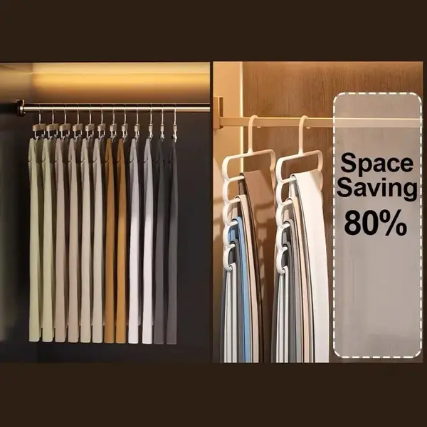 Umerașul multifuncțional cu 5 poziții este extrem de versatil. Din imaginile de utilizare reiese că poate fi folosit nu doar pentru pantaloni sau textile subțiri, ci și pentru organizarea accesoriilor precum eșarfe, curele sau chiar articole mici, datorită distanței dintre bare și a formei lor. Acest aspect îl face util într-o varietate de contexte, de la organizarea garderobei personale până la utilizare în spații comerciale, showroom-uri, hoteluri sau pensiuni.