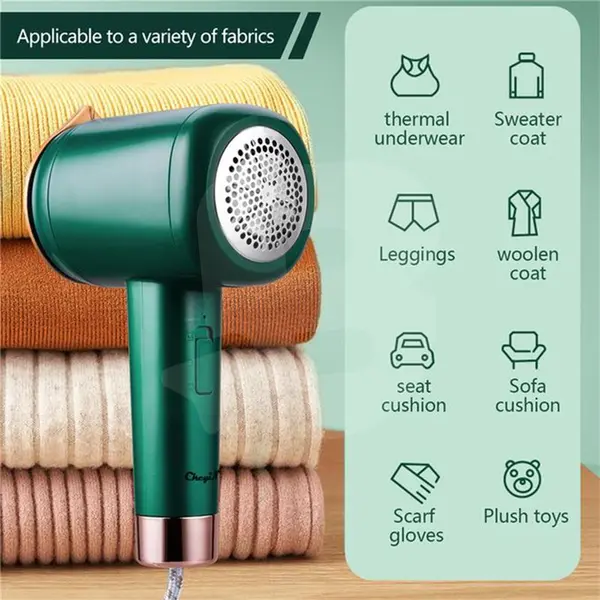 În același timp, aparatul funcționează ca dispozitiv de îndepărtare a scamelor, fiind echipat cu o lamă ascuțită și o sită tip fagure din oțel inoxidabil. Această construcție permite tăierea eficientă a scamelor fără a deteriora materialul. Sistemul este potrivit pentru textile precum pulovere, paltoane, lenjerii, pături, așternuturi, canapele sau perdele, redând materialelor un aspect îngrijit și uniform. Datorită acestei funcții duble, produsul este apreciat pentru vânzare en-gros, având aplicabilitate largă în gospodării.