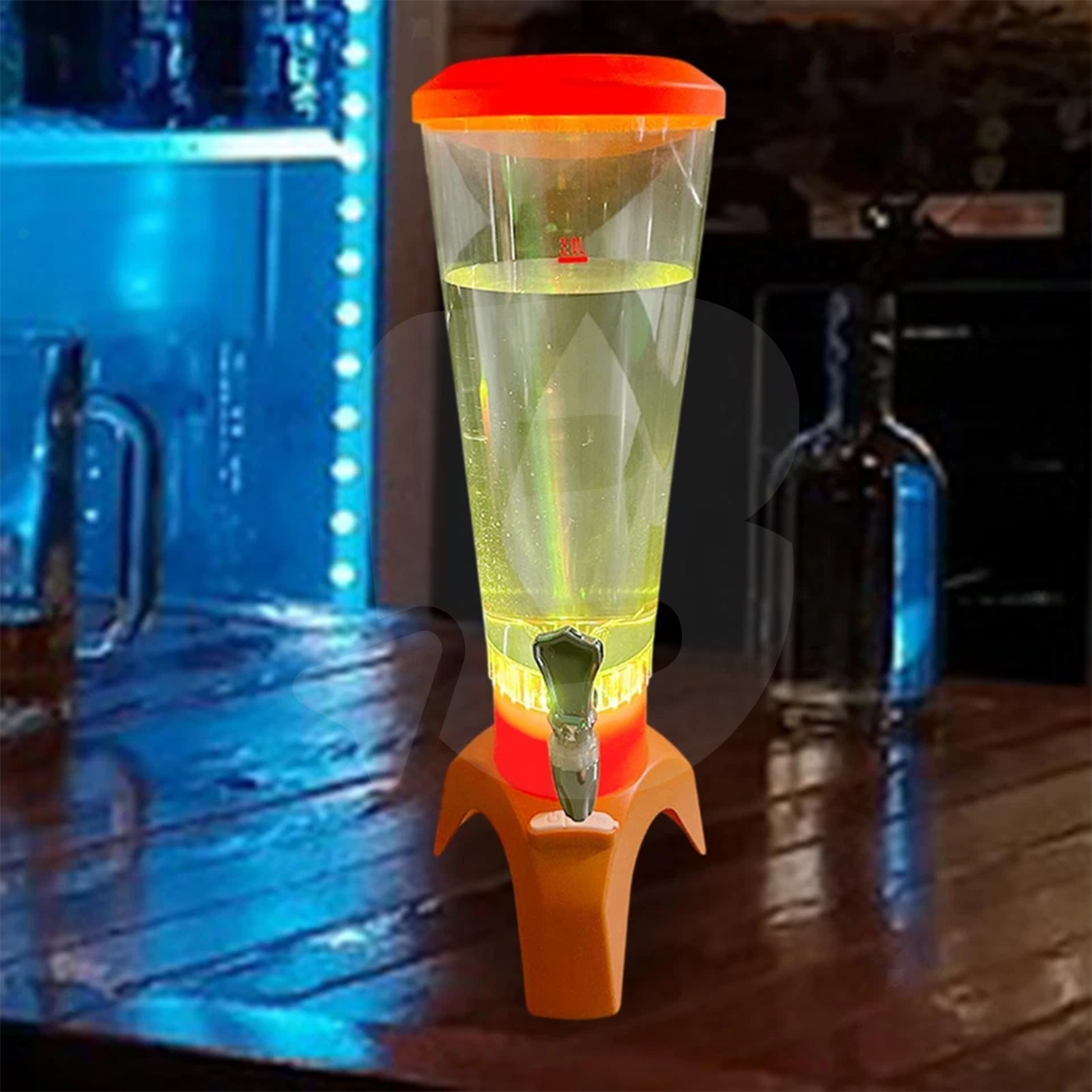 Recipientul transparent cu capacitate de 3 litri permite umplerea rapidă cu bere, cocktailuri, băuturi răcoritoare sau mixuri alcoolice. Forma verticală pune în valoare lichidul din interior, iar iluminarea LED RGB integrată creează un efect vizual atractiv, perfect pentru medii slab iluminate sau petreceri de seară. LED-urile amplifică impactul vizual al produsului și atrag atenția clienților, crescând valoarea percepută a băuturilor servite.