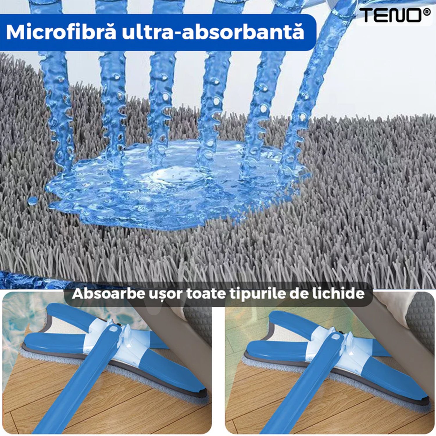 Mopul este echipat cu lavete din microfibră ultra-absorbantă, capabile să rețină murdăria, praful și lichidele fără a zgâria suprafețele. Microfibra permite curățarea eficientă chiar și doar cu apă, fiind potrivită pentru utilizare frecventă. Lavetele sunt detașabile, lavabile și reutilizabile, contribuind la costuri reduse pe termen lung – un avantaj important pentru revânzare en-gros.