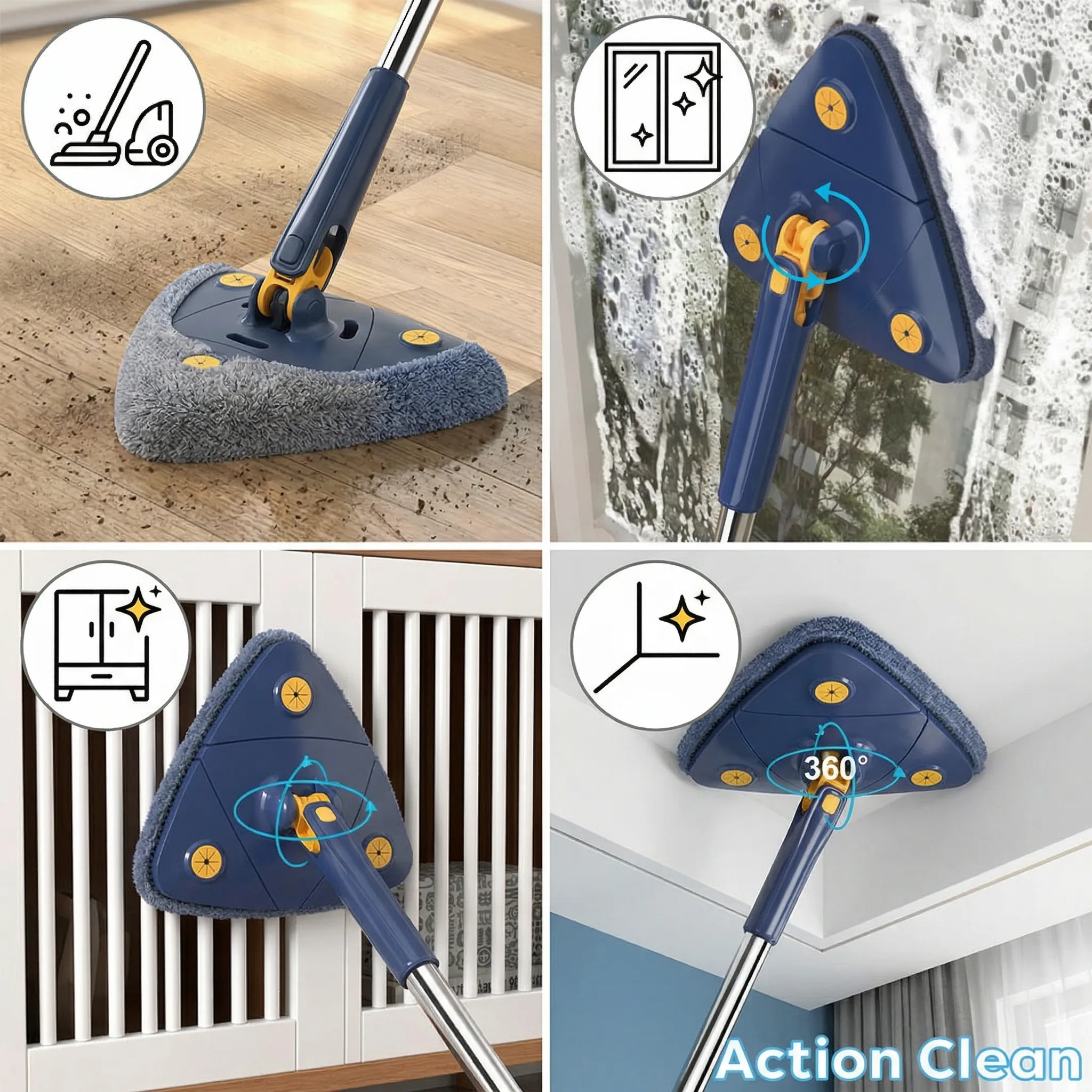 Te-ai săturat de mopurile clasice care lasă praf în colțuri sau sunt greu de manevrat sub mobilă? Mopul Triunghiular ActionClean redefinesc standardele curățeniei casnice. Cu un cap de curățare inovator în formă de triunghi și o manevrabilitate excepțională, acest accesoriu transformă corvoada curățeniei într-o activitate rapidă, protejându-ți în același timp sănătatea spatelui datorită mânerului lung de 130 cm.
