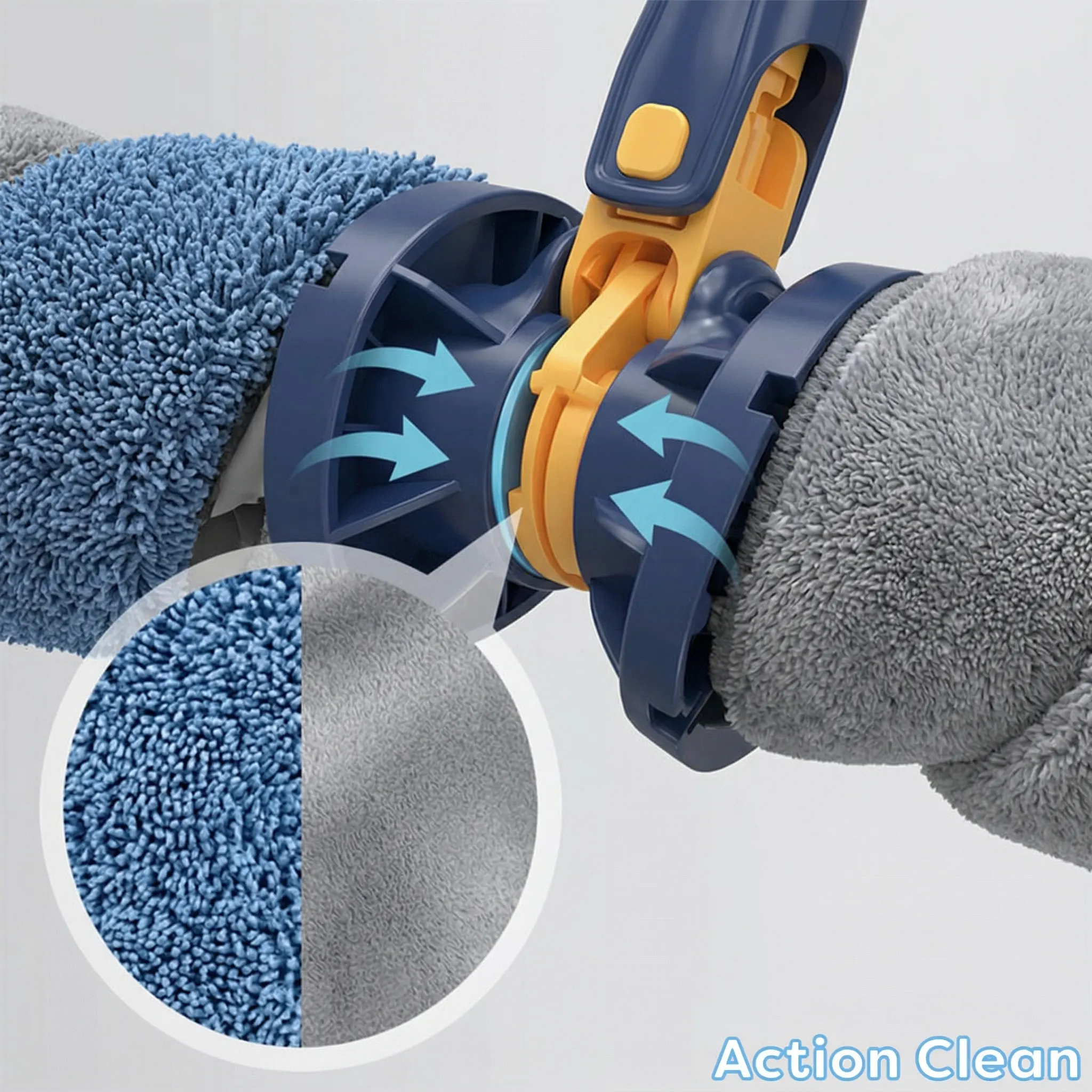 - Versatilitate Maximă (Suprafețe Multiple): ActionClean nu este doar pentru podele. Datorită lavetei din microfibră de înaltă densitate, acesta este perfect pentru curățarea geamurilor, a oglinzilor, a faianței din baie sau chiar a tavanelor, fără a lăsa urme sau scame.