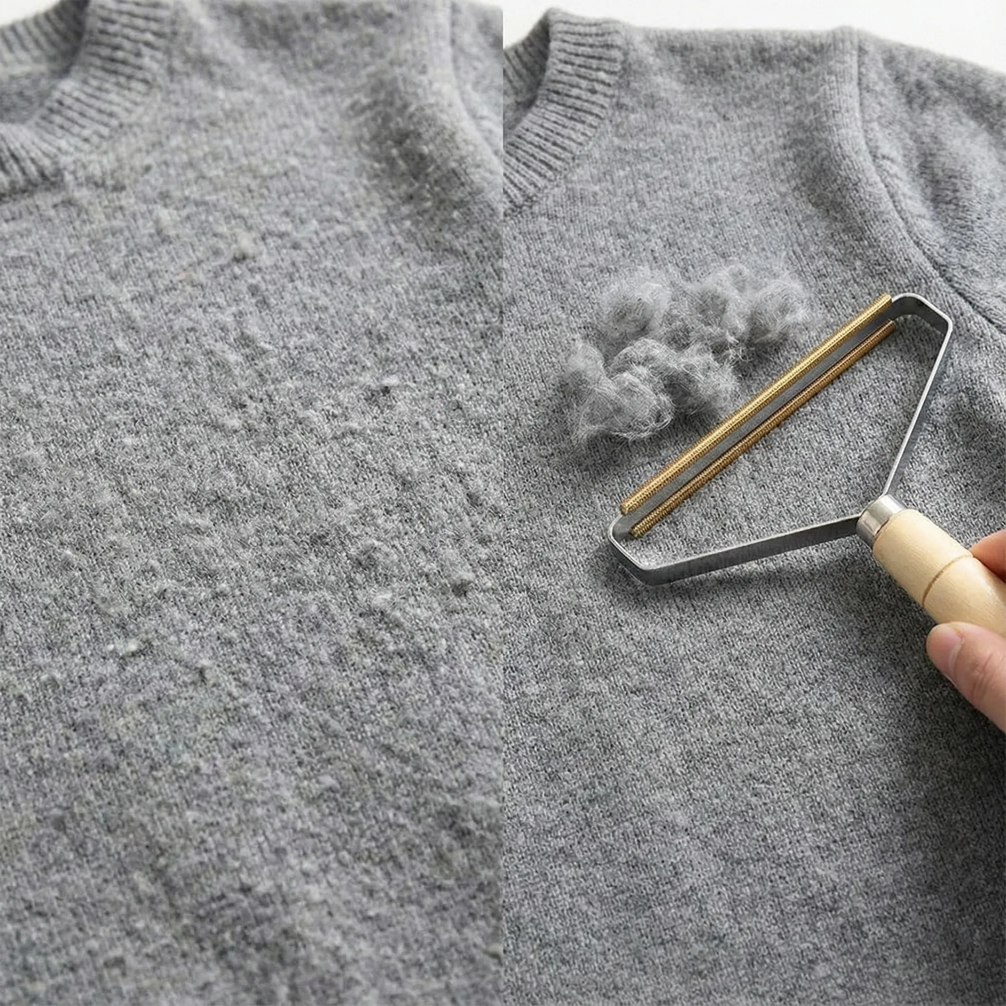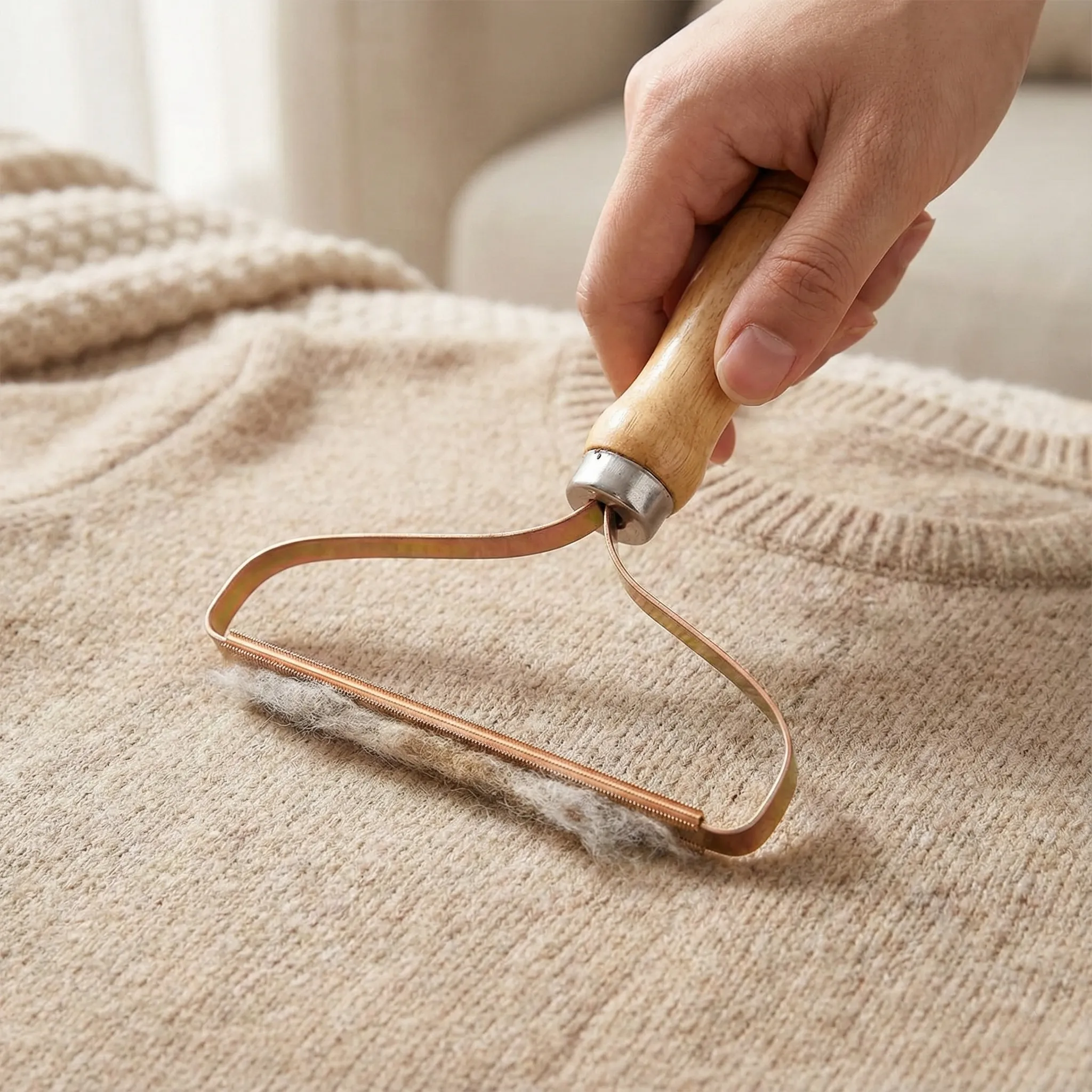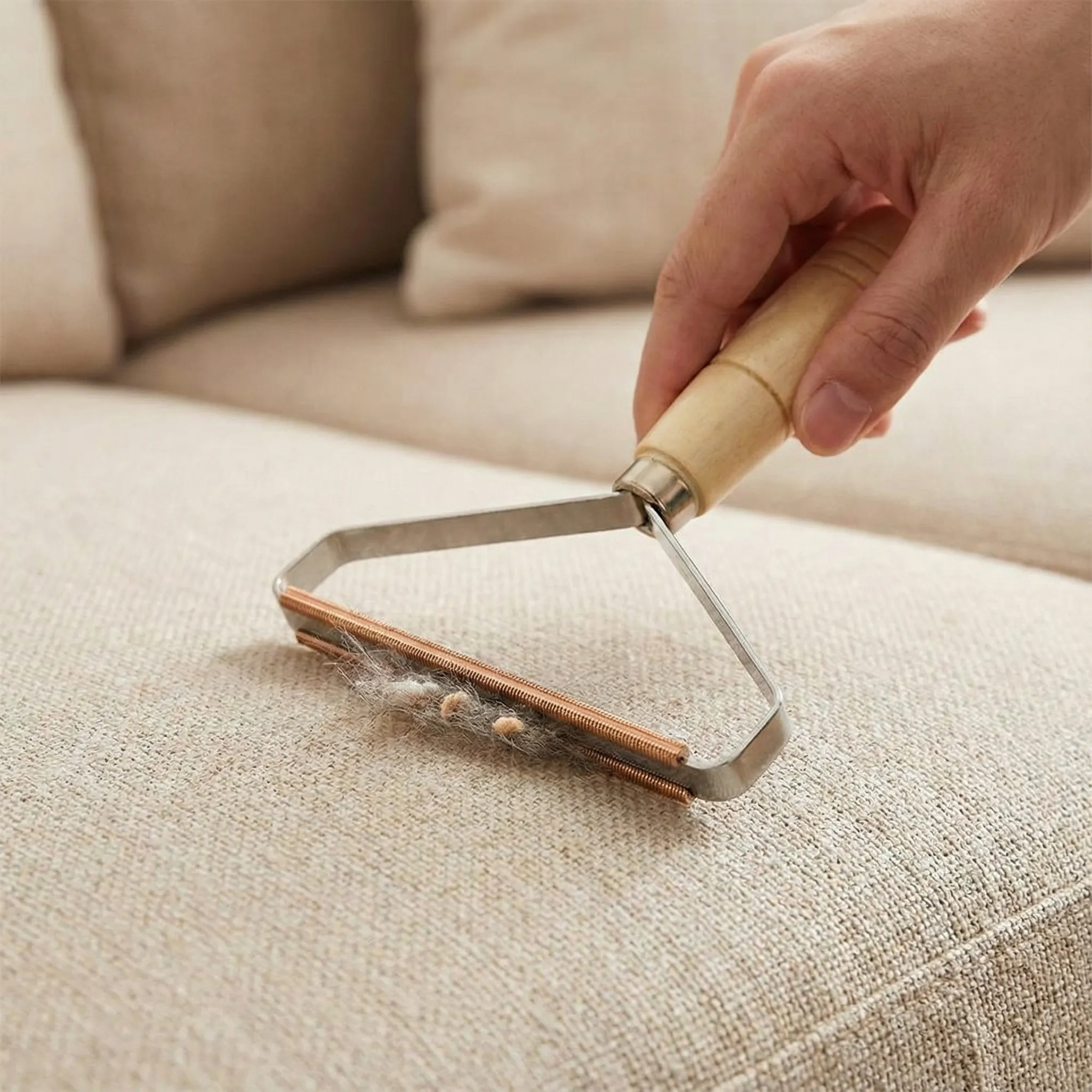 Eficiență Radicală dintr-o Singură Trecere: Datorită capătului de curățare din metal cu micro-dinți de precizie, Scammy® extrage firele de păr și scamele care sunt „împletite” în fibra materialului. Spre deosebire de dispozitivele electrice care se pot bloca sau de rolele adezive care doar ating suprafața, această perie acționează în profunzime, lăsând țesătura curată și împrospătată.
